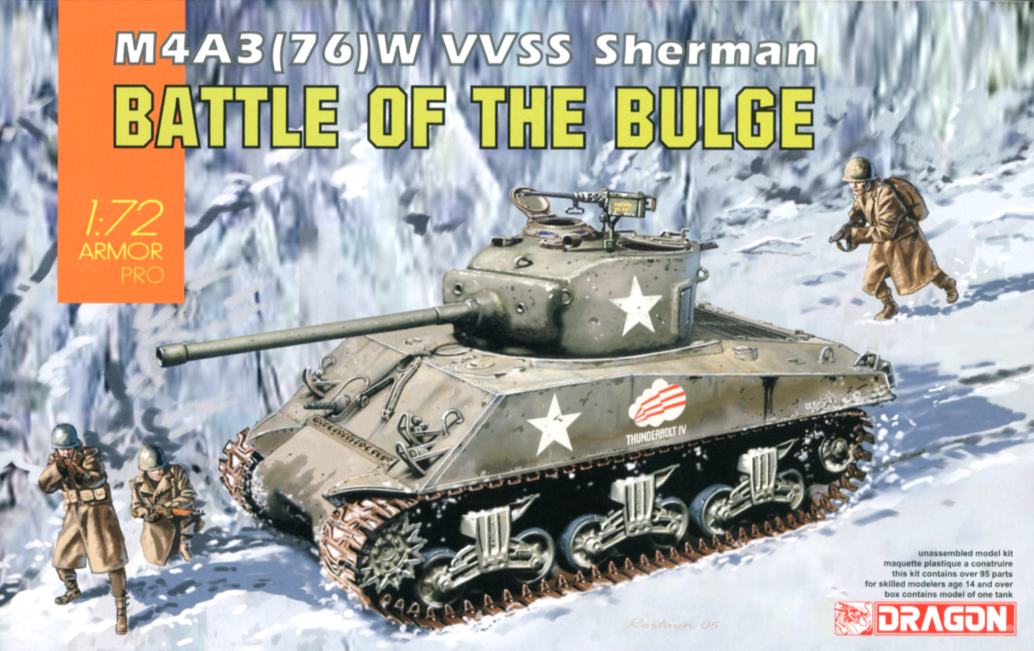 The M4 Sherman must surely be one of the most famous and recognizable tanks of all time. Dragon's latest launch is a version of the M4A3(76)W. This tank’s nomenclature indicates it was powered by a 500hp Ford GAA V8 gasoline engine (M4A3), boasted a 76mm M1 gun (76), and had protective “wet” stowage for ammo rounds (W). The M4A3, the U.S. Army’s preferred Sherman variant, began replacing the M4 and M4A1 in 1944. The more potent 76mm antitank gun was needed to confront more heavily armored and more powerfully armed German tanks, and it started to see combat in France from July 1944 onwards.