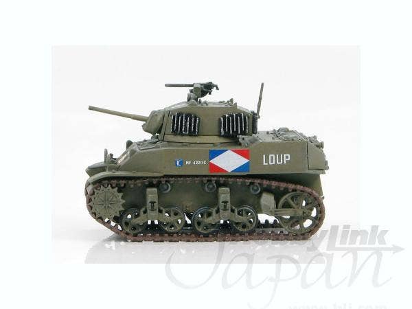 This is a fully assembled and beautifully finished model of a military vehicle, mounted on a black plastic base with a clear plastic cover to keep it free of dust and fingerprints.