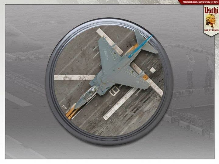 From Uschi van der Rosten comes this beautifully printed scenic display of the USS Makin Island LHD-8 Wasp flight deck in a circular print. Perfect for displaying your 1/72 U.S. Navy and Marine aircraft. For more information please see the images above.