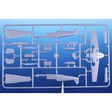 Skill Level 2 kits require basic plastic model assembly techniques, such as cutting parts from the runners, and cutting or sanding away the remains of the gates (the place where the part was connected to the runner). Some kits in this level also provide stickers for some markings. Most level 2 kits do not require cement or paint, but be sure to read any additional information provided to be sure. To nicely complete a level 2 kit, you will want to have a pair of plastic nippers for cutting parts from the runners, and a fine file, sandpaper or hobby knife for cleaning the gates. In some cases, a pair of tweezers makes applying stickers easier. Most adults with no prior modeling experience would have no trouble completing a kit of skill level 2. Parents would probably want to assist younger children with a kit of this level if they have never built one before.