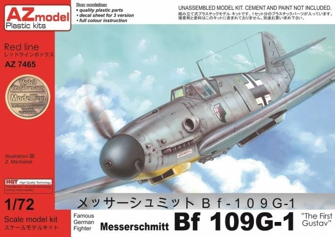 From AZ Model comes this detailed kit of the Messerschmitt Bf-109G-1 (the first Gustav!) in 1/72 scale. All parts come molded in grey and tan plastic with scribed panel lines and clear parts for the canopy (closed option only). Decals to build one of three marking options are also included!