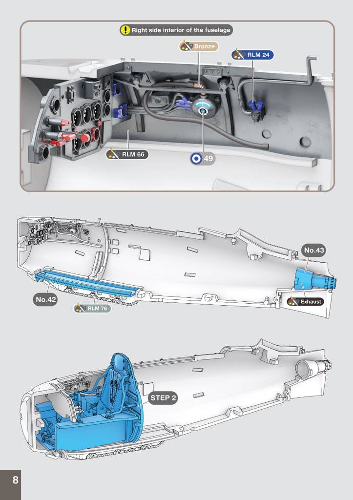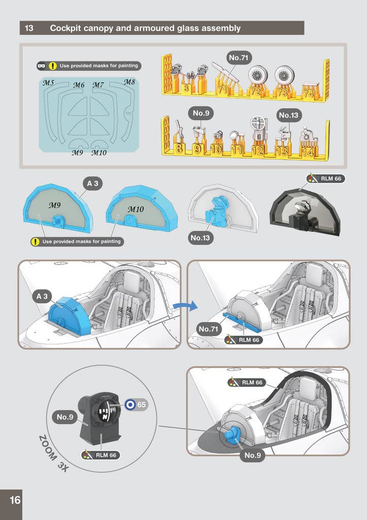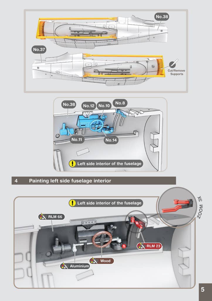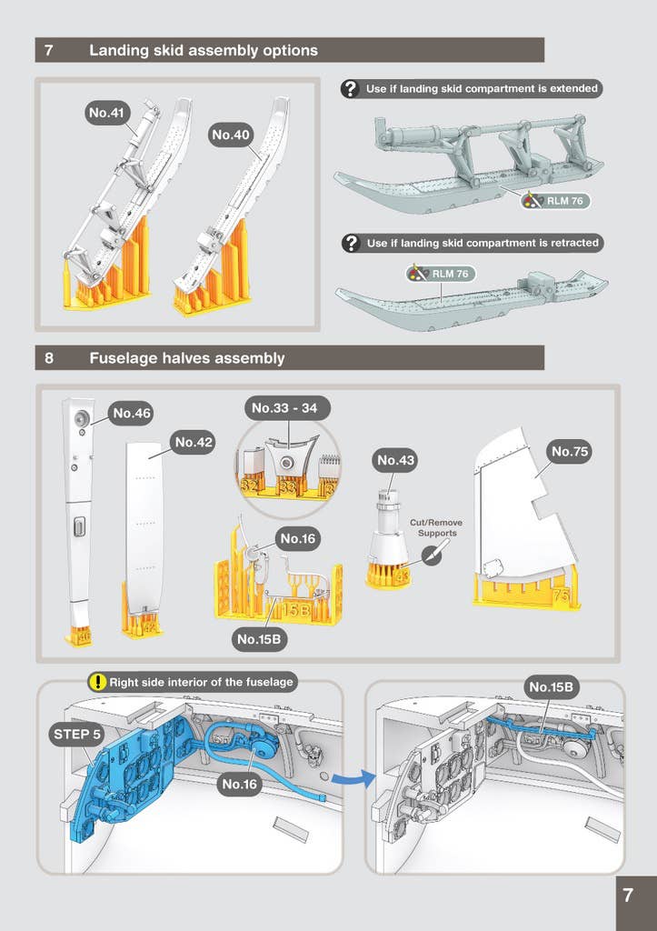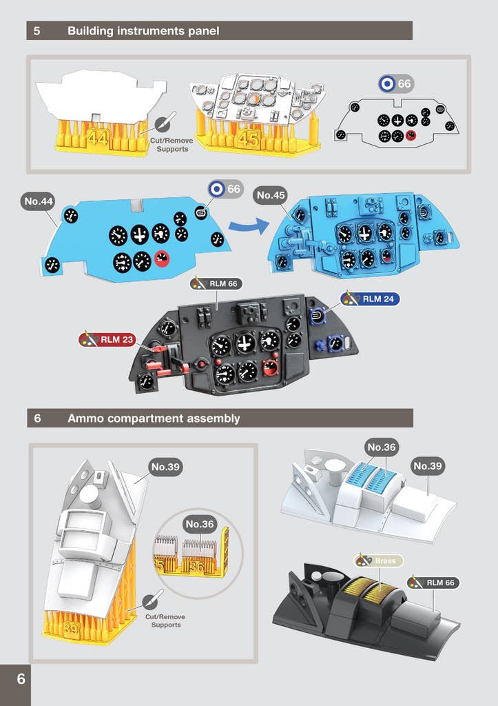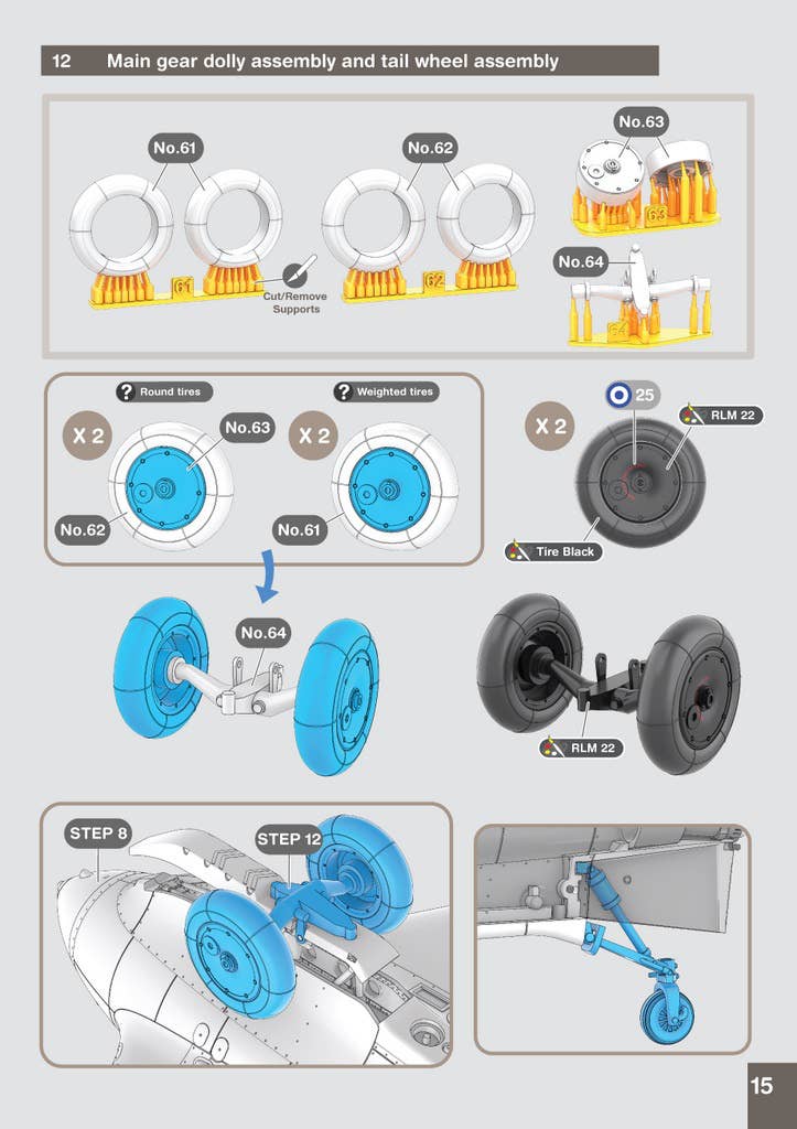 This kit features a 30mm MK108 cannon mounted on the B-2 model, recreated in 3D. The gun bay and ammunition compartment are faithfully represented, allowing for the selection of open/closed hatch states. The canopy can be displayed in either the open or closed position, and both the flaps and landing gear can be positioned up or down. It includes tires with both deformed (under weight) and non-deformed versions, as well as options for a tailwheel with or without a cover, providing a wealth of options in this kit.