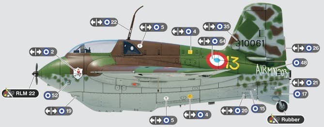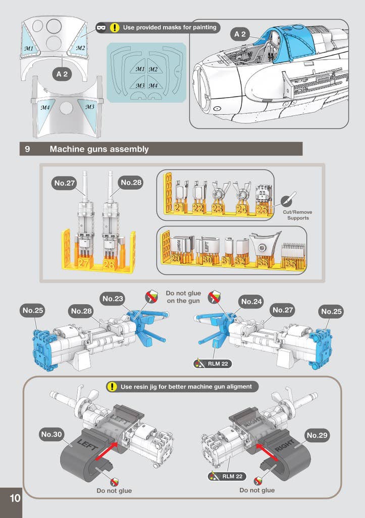 This kit comes with 6 types of decals (4 German, 1 each from the UK and France) and includes a painting mask seal. The transparent parts, such as the canopy, are made from injection-molded plastic. A resin jig for attaching the machine guns is also included.