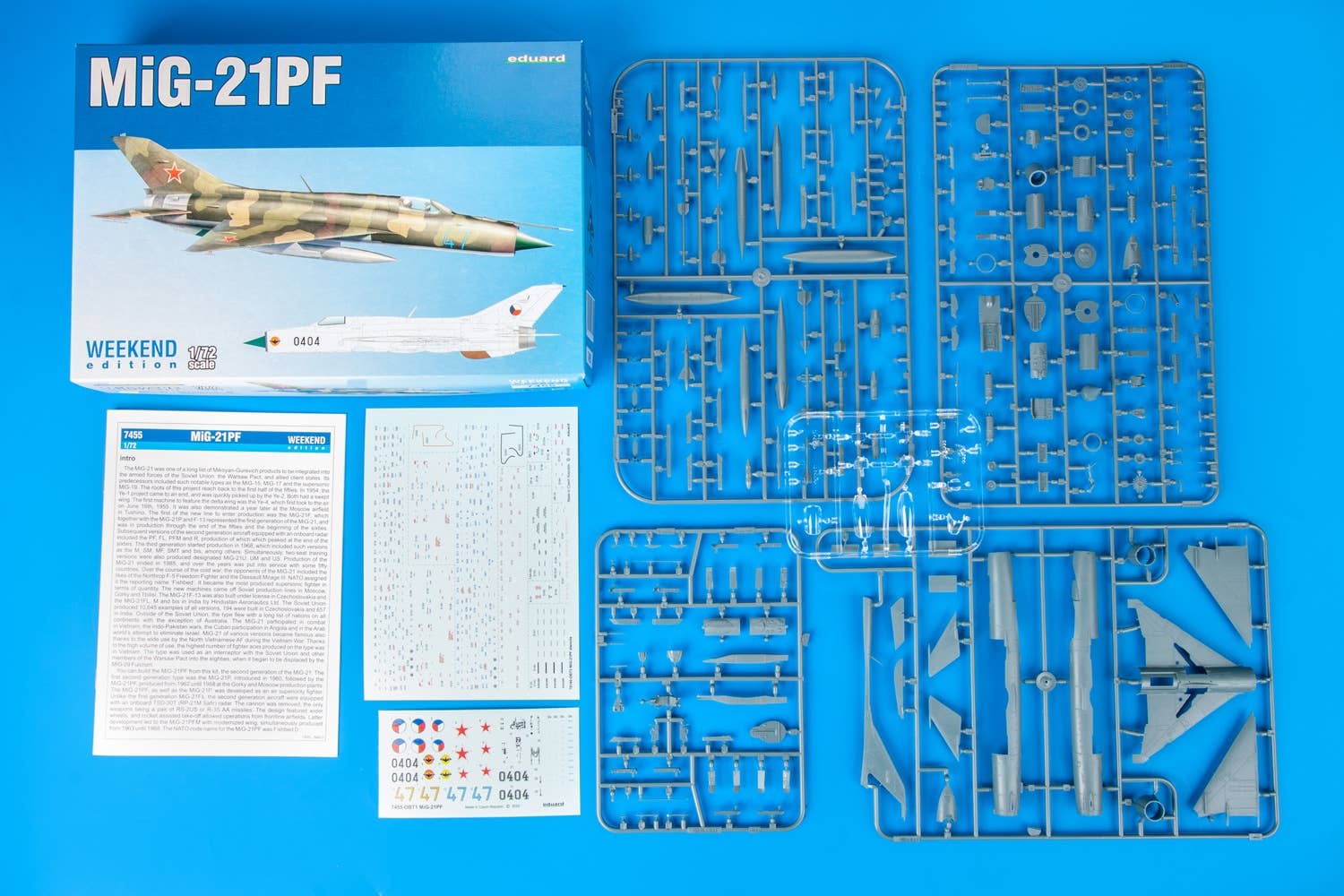 This is a highly detailed 1/72 scale plastic model kit of the MiG-21PF (Weekend Edition) as shown in the photos. This kit includes runners molded in dark gray and clear parts and 2 types of decals. Order yours today!