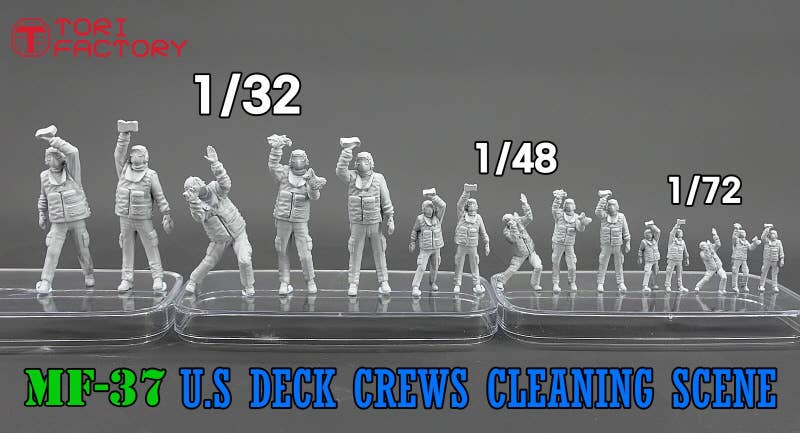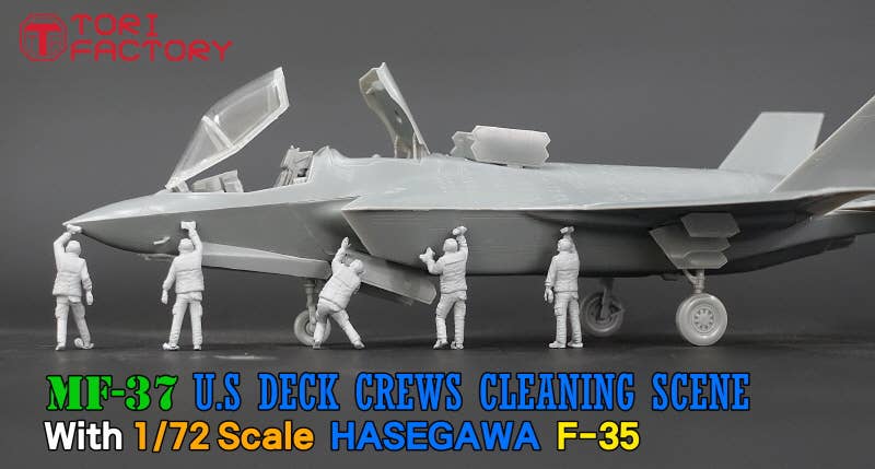 Deck crewmen are every bit as important as the pilots who operate the aircraft on nuclear aircraft carriers operated by the U.S. Navy. Known as the "Rainbow Gang" due to their color-coded outfits, used to improve work efficiency and clarify roles, these workers spend a lot of their time washing aircraft that have returned to the carrier to protect them from salt damage. This set of five 1/72-scale crewmen are busily engaged in wiping down an aircraft with rags and sponges; they're an excellent addition to your diorama! Made of unpainted resin; aircraft is not included. Place your order today!