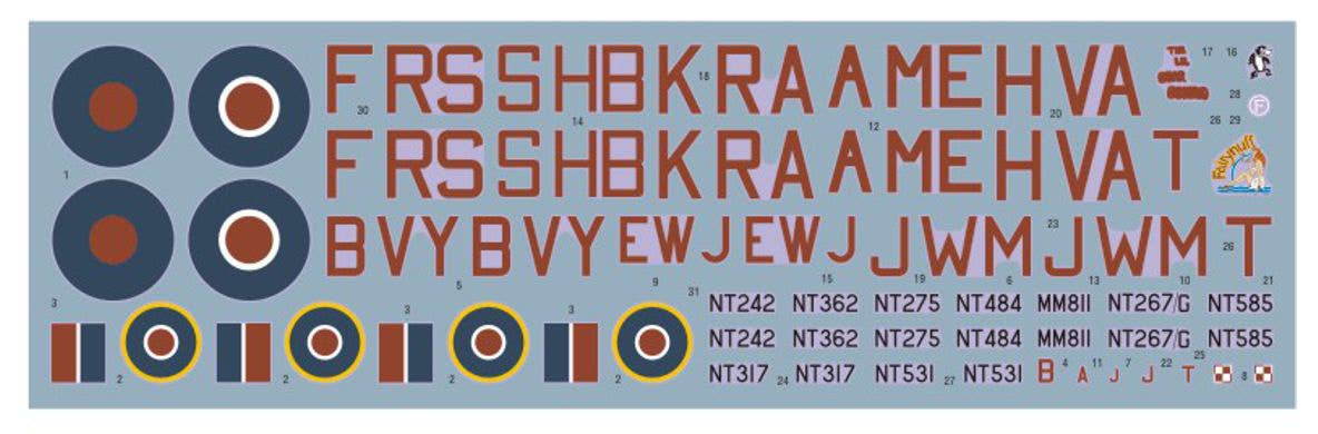 This is a sheet of water-slide or dry transfer decals for marking aircraft models.