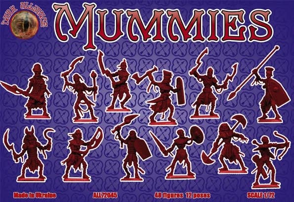This set of 48 unpainted warrior mummy figures -- 2 each in 12 different poses -- won't be content sitting around inside a glass case in a museum! They're perfect for fans of wargaming and diorama-building!