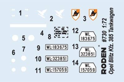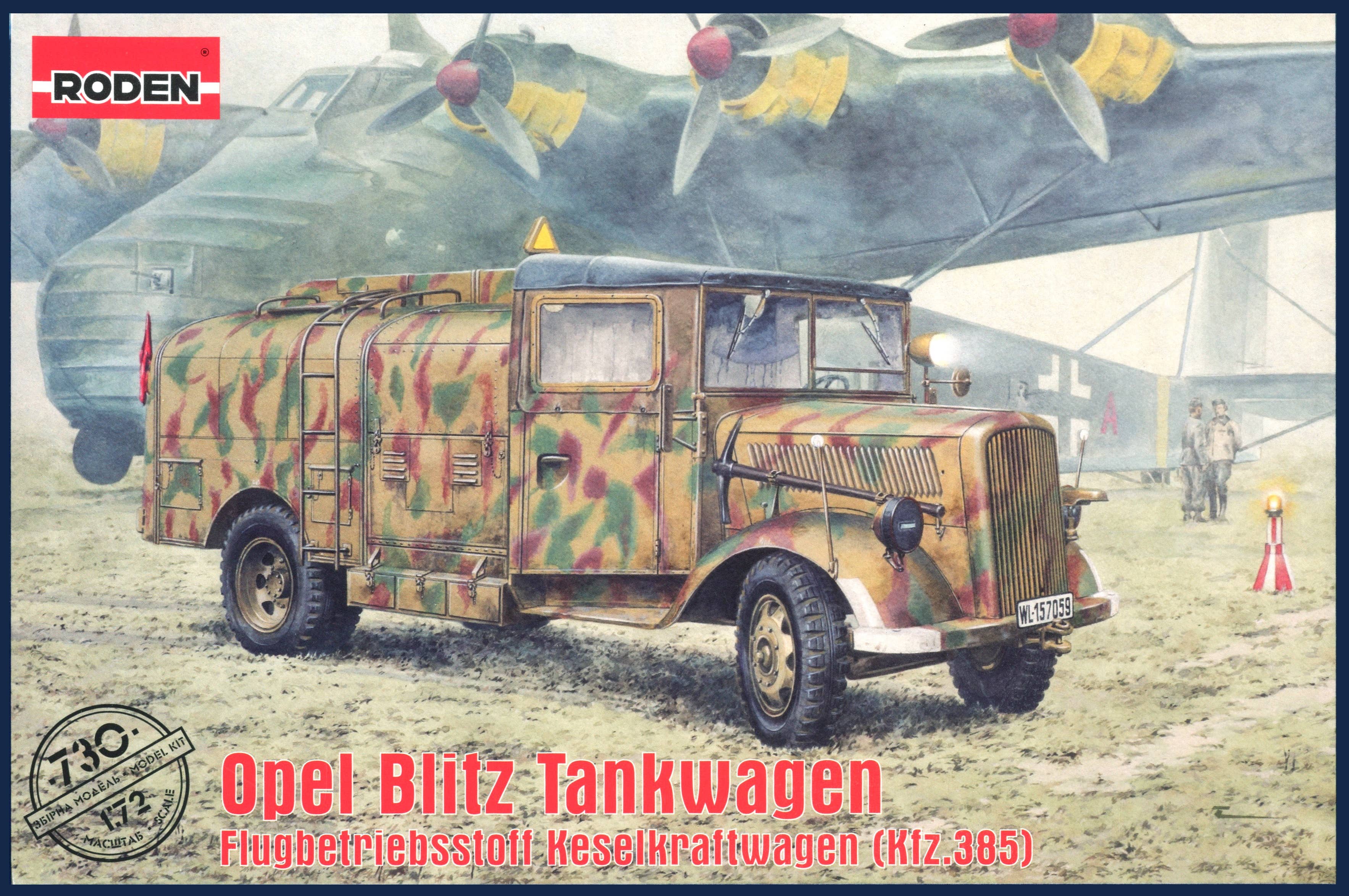 The Open Blitz Kfz.385 Tankwagen was a German airfield fuel servicing truck developed using the chassis of the well-known three-ton Opel Blitz 3.6 3,000-pound truck. Production began in 1941 and continued until 1943, during which time several hundred of this type of truck were produced. Despite their relatively small numbers, their use was very intensive, from North Africa to the Eastern Front. The fuel servicing truck was suitable for the supply of fuel to many different tyes of aircraft of the Luftwaffe, and in the last few months of the war some machines of this type were employed by units equipped with the Me 262 jet fighter.