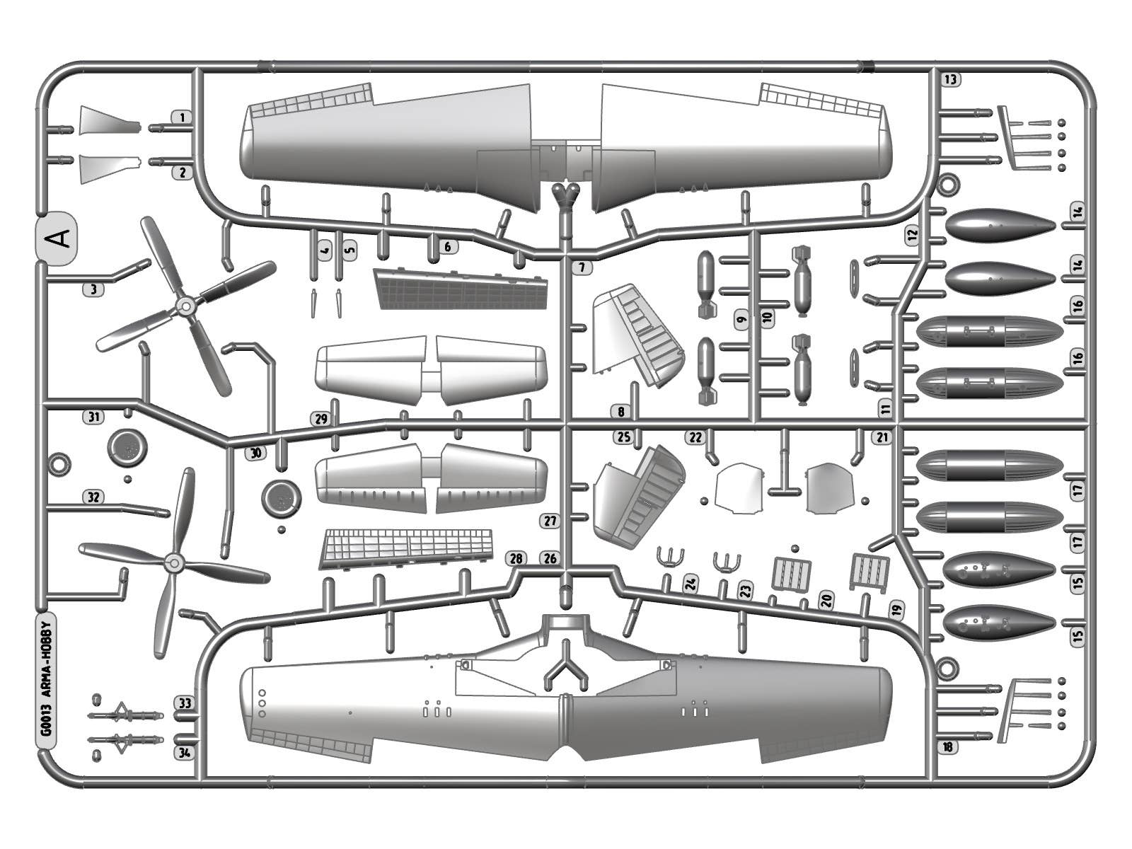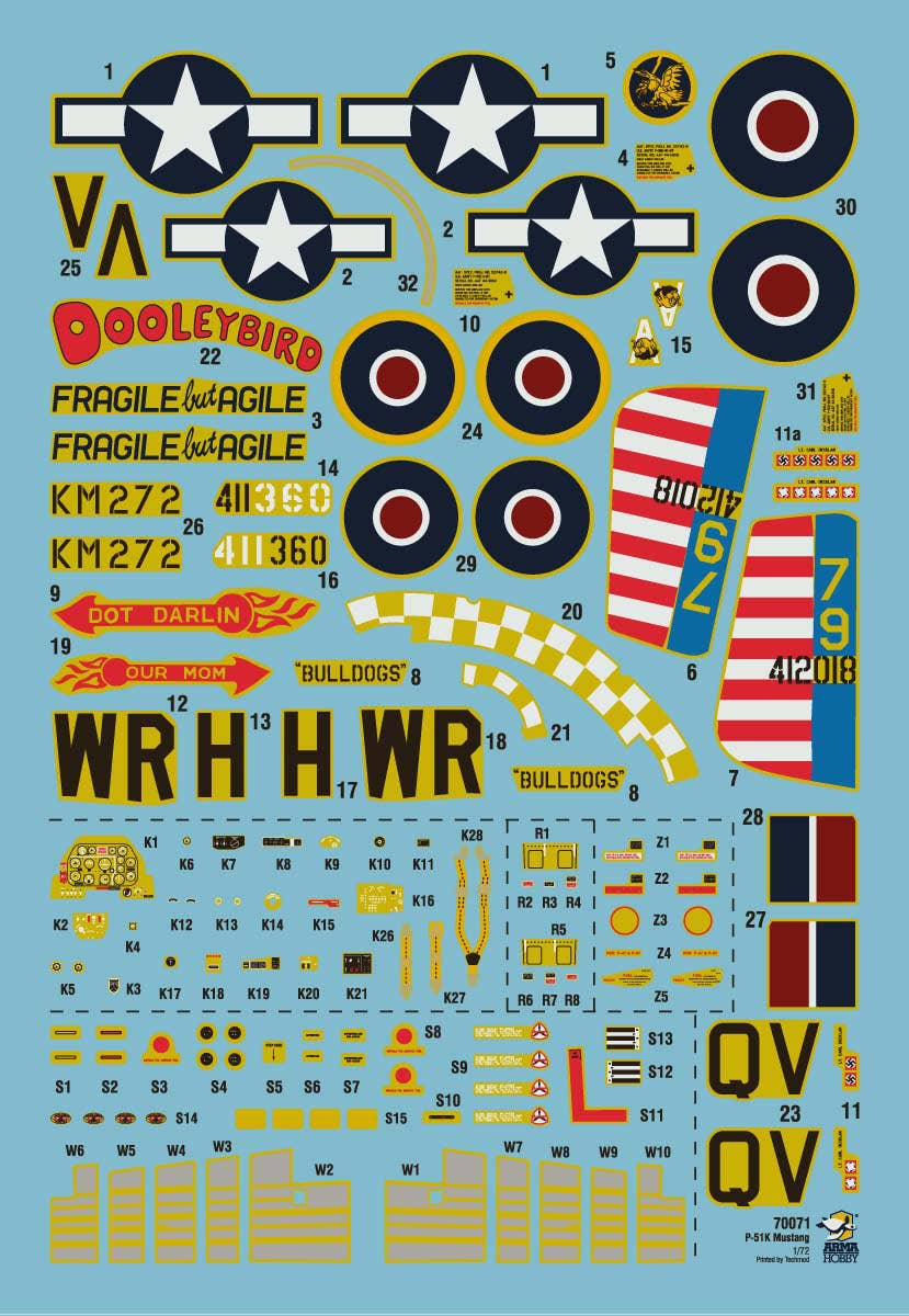 Arma Hobby brings us a new 1/72-scale model kit of the P-51K Mustang! This kit features realistic reproductions of the cockpit interior, landing gear wells, and other fine details, and includes decals for three versions: one each for the U.S. European theater, U.S. Philippine theater, and Royal Air Force. A paint mask sticker is included too.