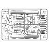 A wide variety of optional parts are included, such as two types of exhaust pipes, a propeller, a gunsight and cockpit, a vertical stabilizer with or without dorsal fins, and two types of horizontal stabilizers (with fabric covering and all-metal elevators). Also included are bombs, two types of drop tanks, three types of canopies, reconnaissance aircraft-style parts, and multiple antennas, with the landing flaps being separate parts. By combining these optional parts, it is possible to recreate almost any P-51D/K that appeared in World War II!