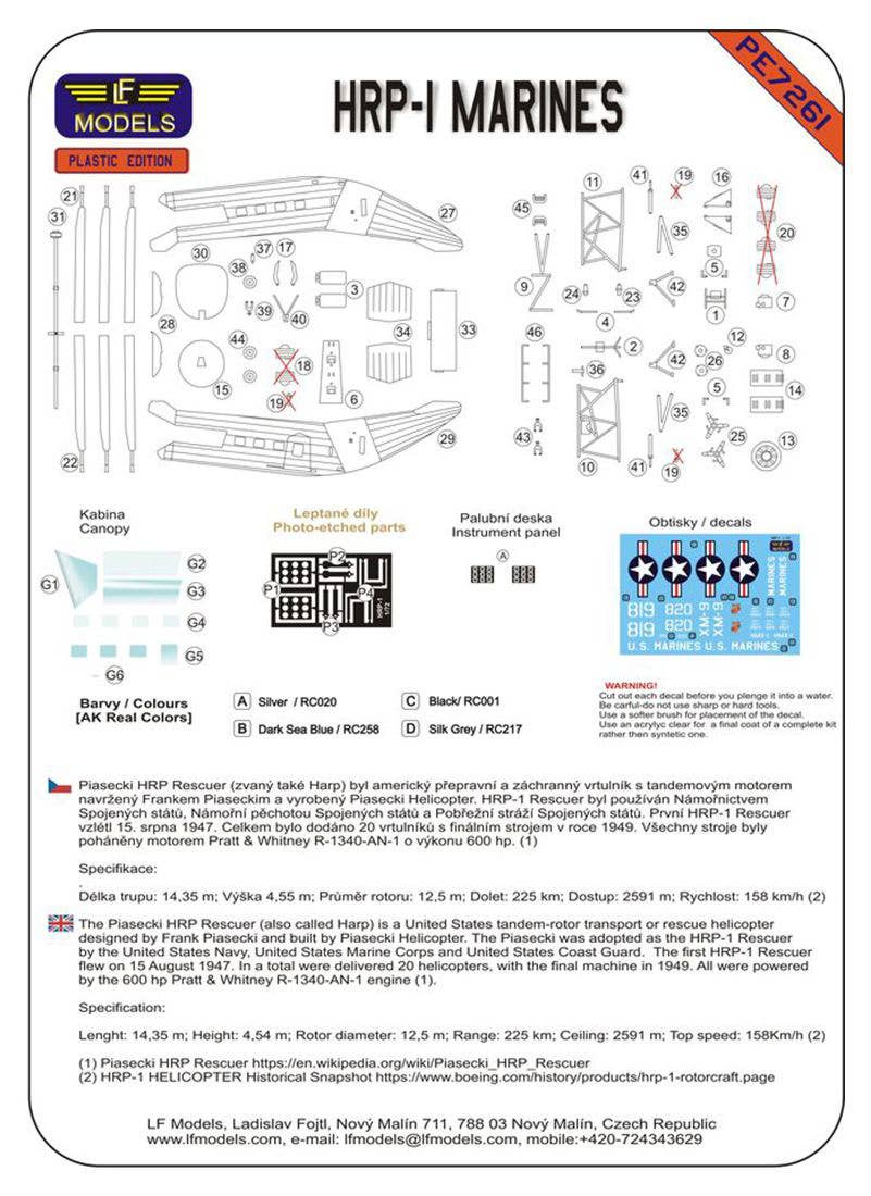 This 1/72-scale model kit from LF Model includes parts to build one Piasecki HRP-1 helicopter. Decals for three U.S. Marine Corps versions are included, as are photo-etched parts. Order yours today!