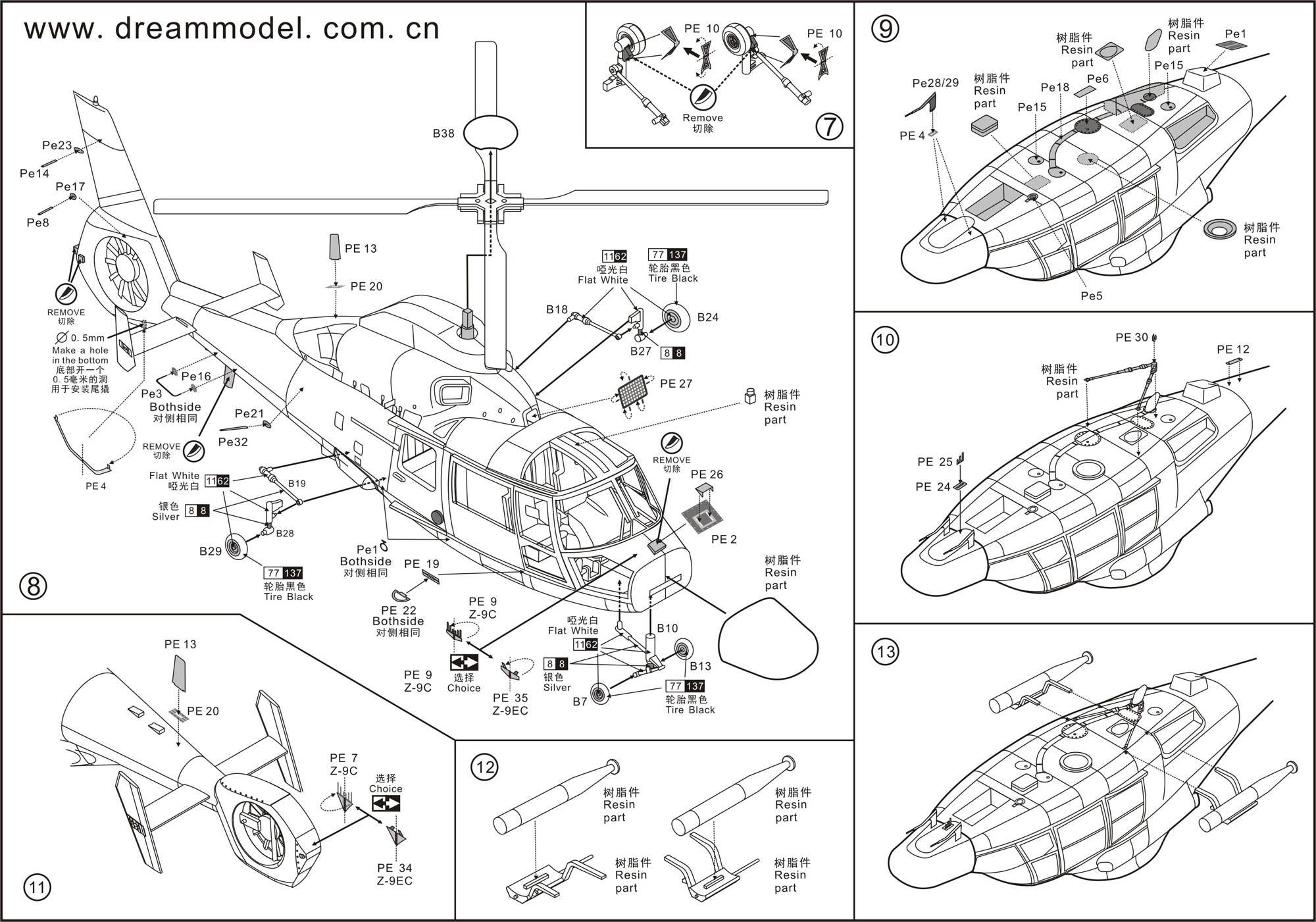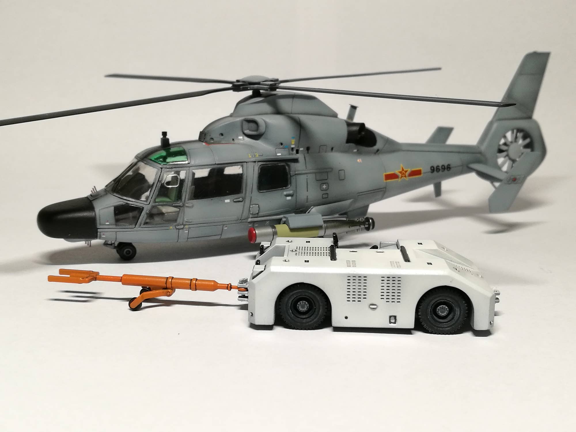 Developed in France, the Dauphin II helicopter has been licensed for manufacture by many countries around the world including China as the Z-9 who use it as a anti-subarine / patrol aircraft. This kit adds new resin parts and etching parts for C type to conbert the conventional Dauphin II (Z - 9 type) kit. Also the EC type which was exported to Pakistan can also be built thanks to included PE-parts. Tow vehicle is also included.
