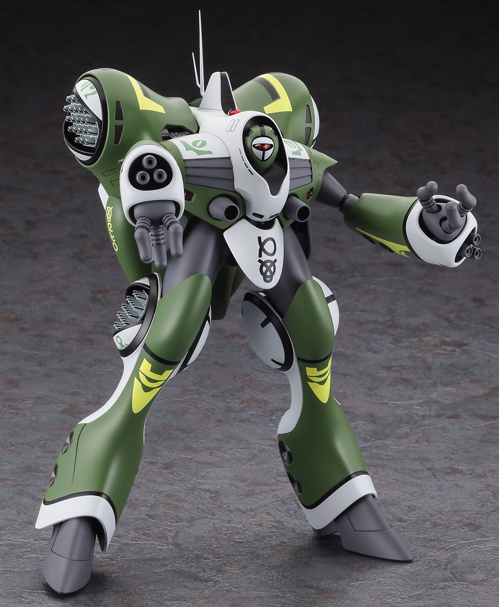 This 1/72-scale model kit from Hasegawa recreates the Queadluun-Rau piloted by Milia in the "Macross" TV series, with numerous new parts included! The kit assembles easily without the need for glue; the kit is molded in five colors to provide a finish that closely matches the concept art. Movable poly joints add posability after assembly, and the chest-mounted medium-caliber rapid-fire impact cannon is articulated via a ball joint. The arm-mounted high-speed rotating three-barrel laser pulse gun is also rotatable. The hatches on the back and the leg-mounted close-range small high-mobility missile launchers can be displayed in open or closed positions using interchangeable parts. All three fingers on the hands are jointed at the base, too! The cockpit hatch can be opened and closed, an upper-body figure of Milia Farina is included to place in the cockpit (glue is required to assemble the figure; decals are included for her eyes, as well as for the Queadluun-Rau's markings.). Order yours today!