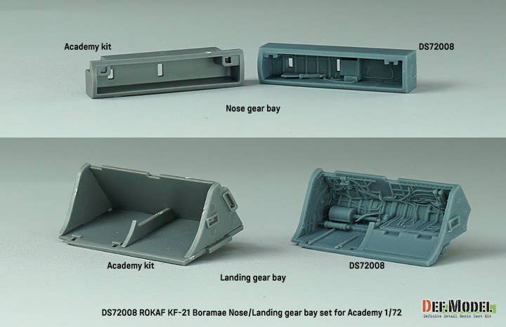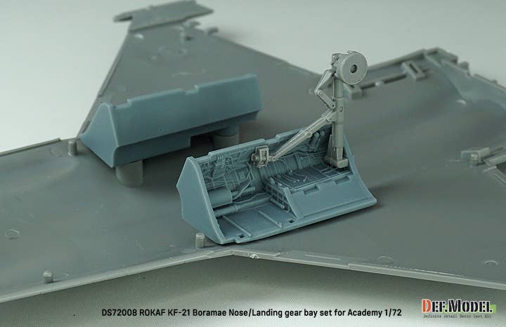 This resin detail set recreates the landing gear bays of the South Korean next-generation stealth multirole fighter, the KF-21 Boramae (also known as "Poraeme"). It is compatible with the Academy model kit.