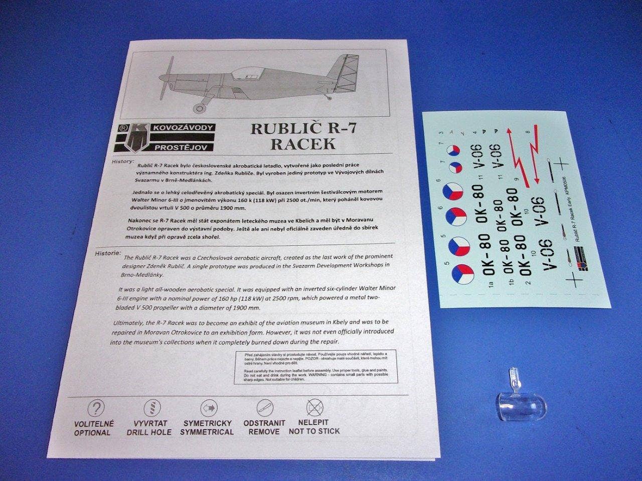 KP Model brings us a 1/72-scale model kit of the Rublic R-7 Racek, a prototype racing machine designed in the 1960s. It comes with decals for three versions. Place your order today!