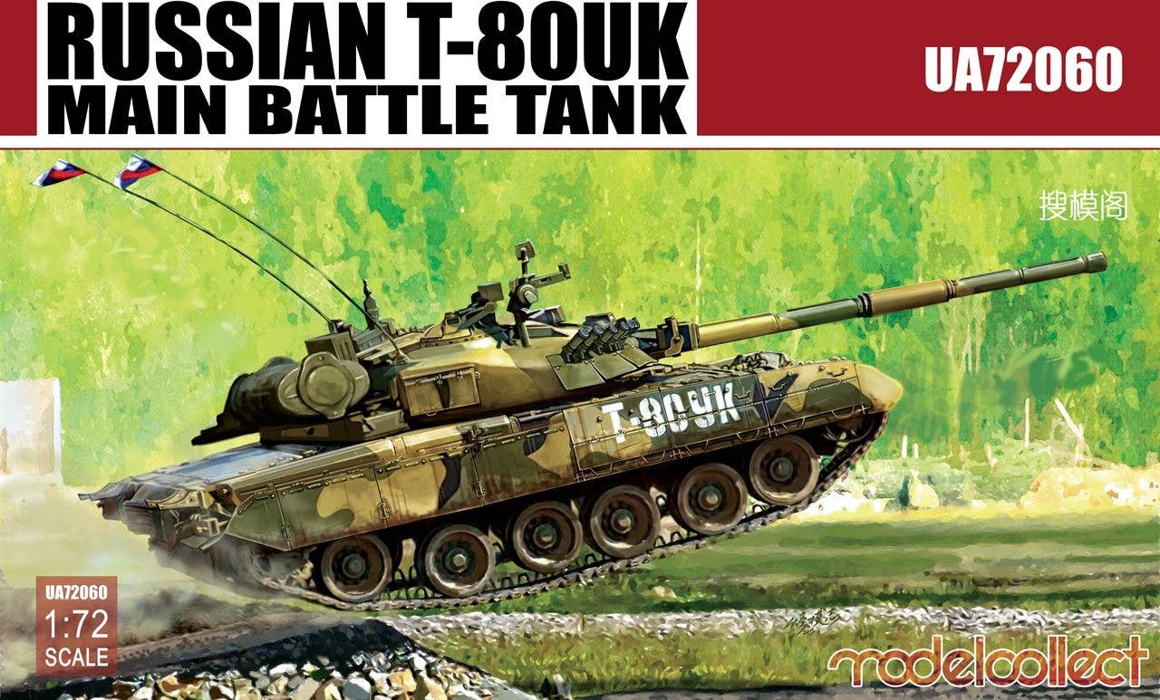 From ModelCollect comes this nicely detailed kit of the Russian T-80UK Main Battle Tank in 1/72 scale! All parts come molded in grey plastic. Tracks are link-and-length style also molded in grey plastic. Photo-etched metal detail parts, a metal barrel and decals are also included!
