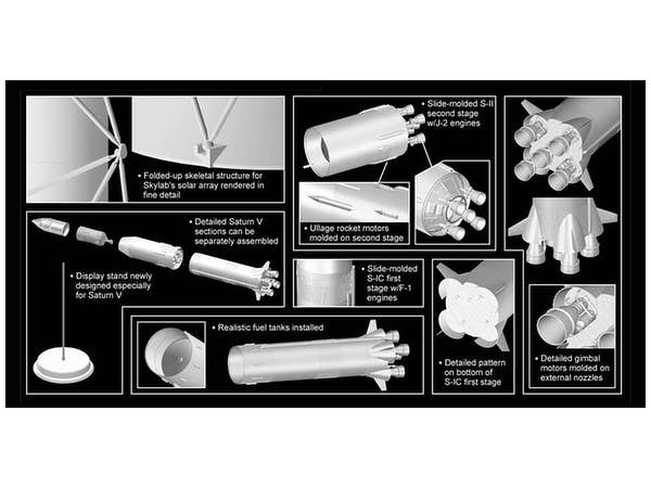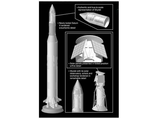• Skylab with its solar observatory, airlock and workshop rendered in remarkable detail