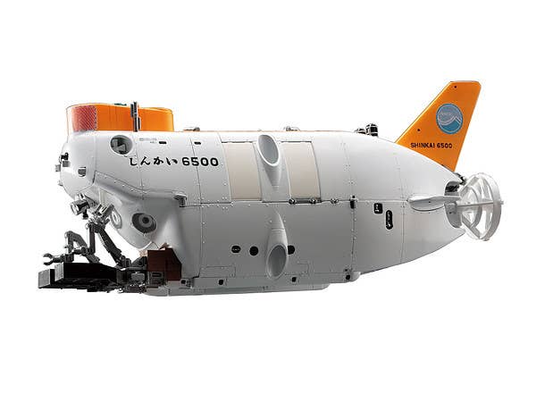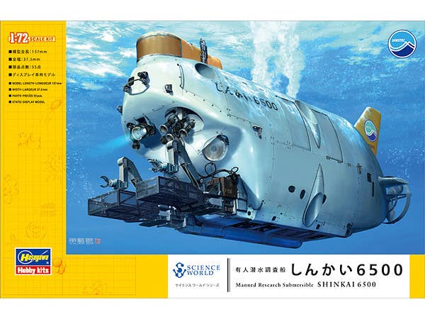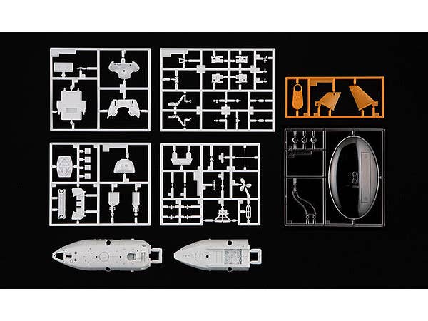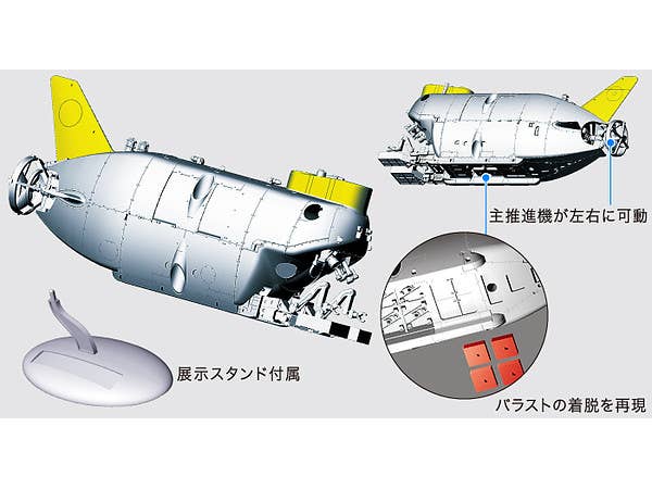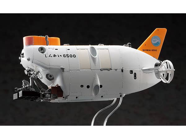 An all-new tooling of the deepwater submersible Shinkai 6500! Molded in white and orange plastic. Decals included. Will measure 13.7cm long when assembled.