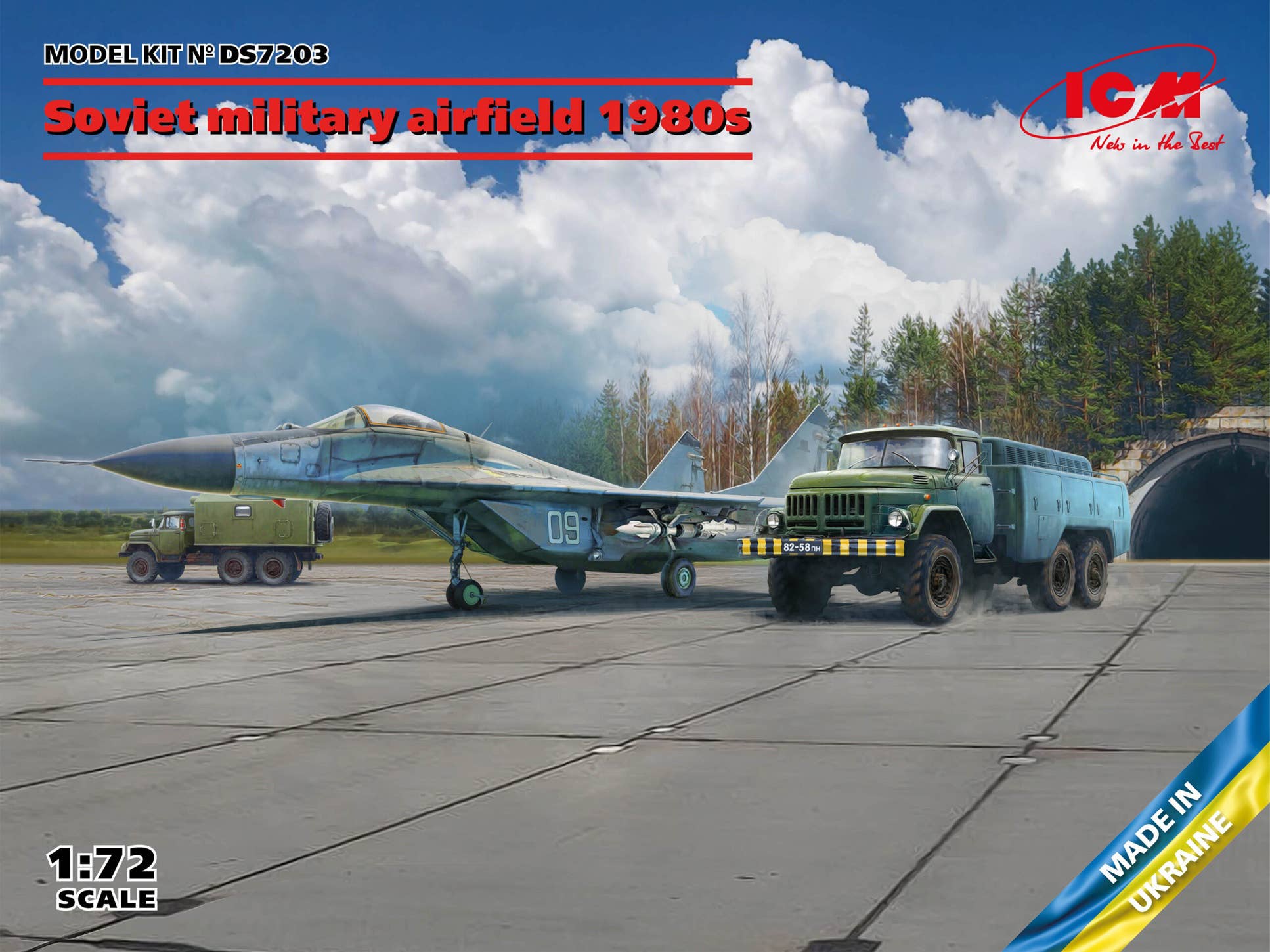 This model kit set from ICM includes parts to recreate a Soviet airfield from the 1980s: a MiG-29 fighter, an APA-50M, an ATZ-5, and a concrete plate for the runway. Order yours today!