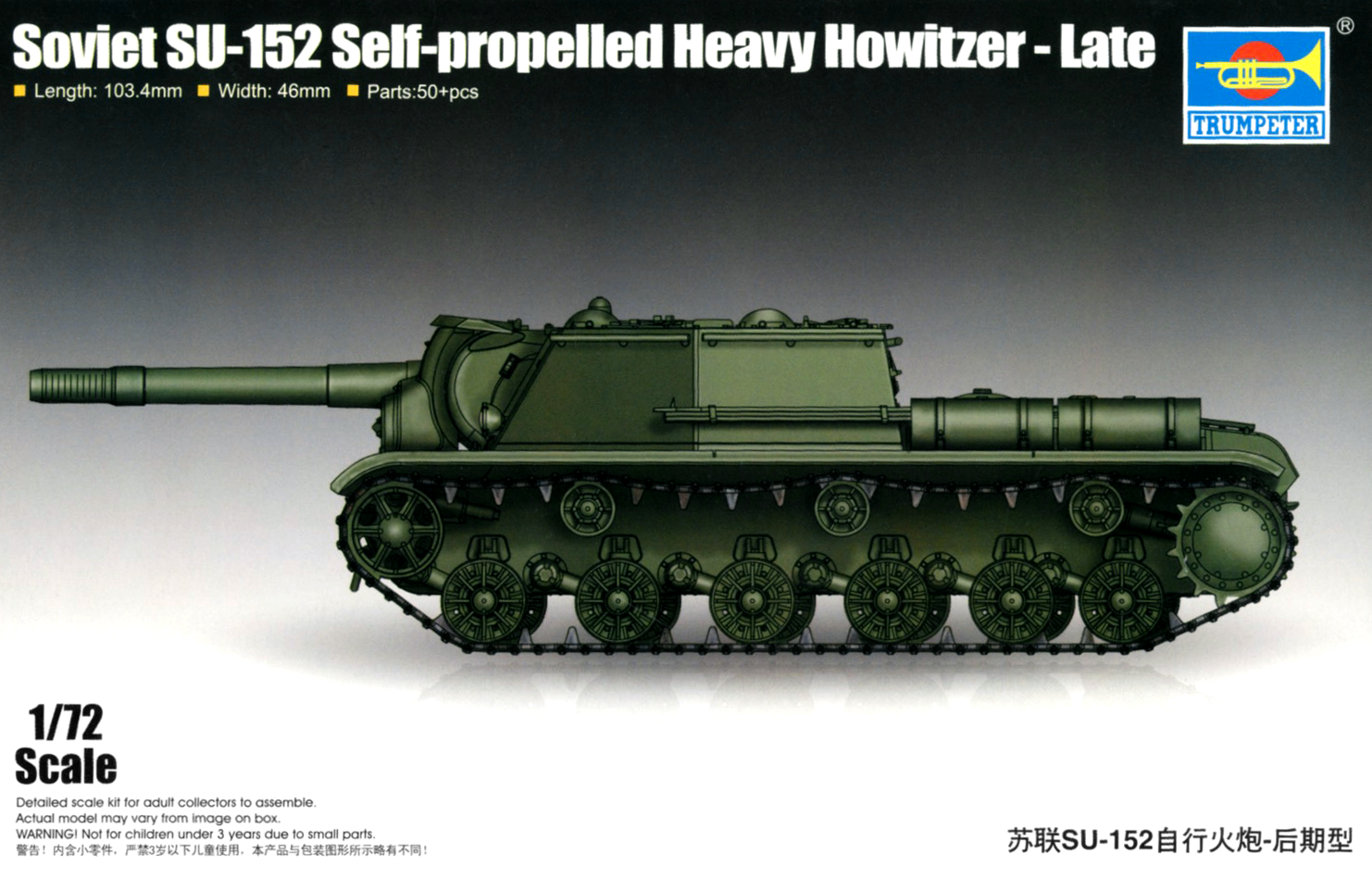 The SU-152 was a Soviet self-propelled heavy howitzer used during World War II. It mounted a 152mm gun-howitzer on the chassis of a KV-1S heavy tank. Later production used an IS tank chassis; that version was redesigned as ISU-152. Because of its adopted role as an impromptu heavy tank destroyer, capable of knocking out the heaviest German armored vehicles -- Tiger and Panther tanks, and Elefant tank destroyers -- it was nicknamed Zveroboy, "beast killer."