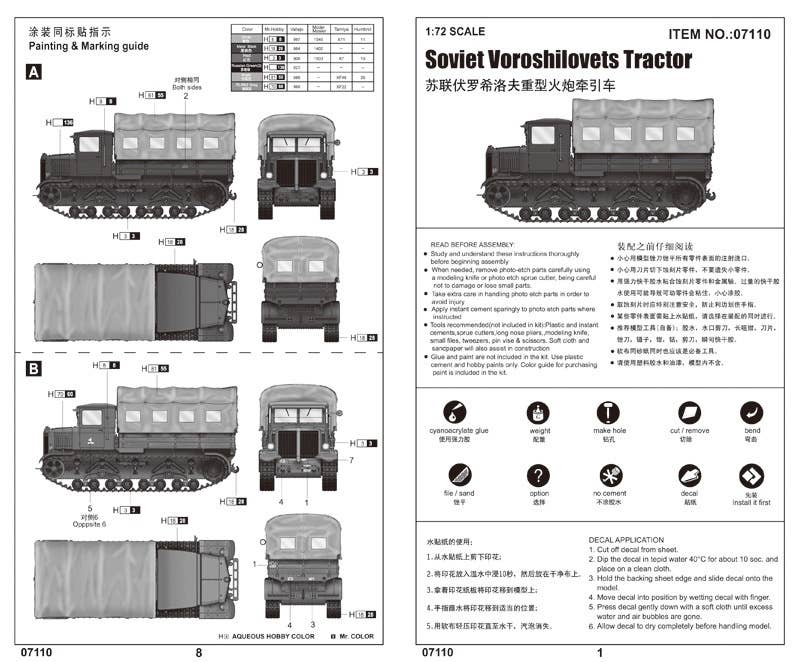 This kit is molded in gray and brown plastic, with decals included.