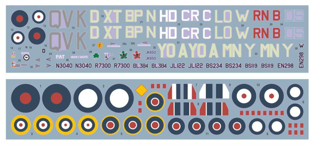 This is a sheet of water-slide or dry transfer decals for marking aircraft models.