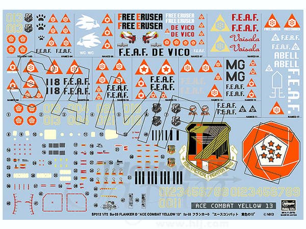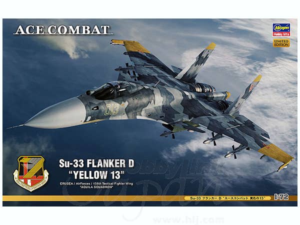 Limited reissue of the Hasegawa 1/72 kit with markings for the Su-33 Flanker D "Yellow 13" as seen in the game Ace Combat. For marking details please see box image above.