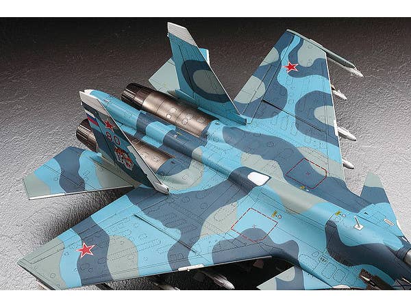 Here's something Russian aircraft fans have been waiting for: an Su-33 Flanker! This is an exciting new kit from Hasegawa, and includes an even higher level of detail than we've seen in many of their 1/72 jet kits! The cockpit tub and instrument panel feature raised switches and dial details, while decals are included as well. Actual molded details on the consoles and panel are a welcome addition! Intakes and exhausts are appropriately deep, the landing gear is beautfully detailed, and we are given a wealth of armament including four rocket pods, four R-27R missiles, two R-77 missiles, two R-60 missiles, four R-73 missiles and two R-27ET missiles.