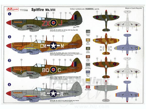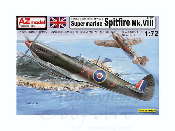 A very nice new-tool kit of the Spitfire VIII from AZ Model of the Czech Republic. Online reviews state that these kits are very accurate overall, with a good level of detail. This boxing includes markings for two RAF and two USAAF aircraft.