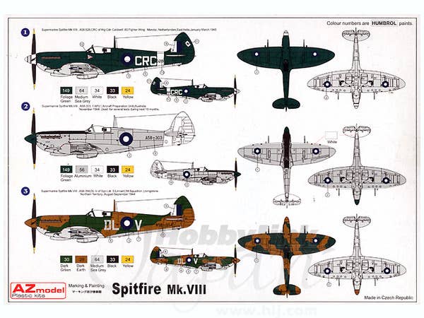 A very nice new-tool kit of the Spitfire VIII from AZ Model of the Czech Republic. Online reviews state that these kits are very accurate overall, with a good level of detail. This boxing includes markings for three Australian aircraft.