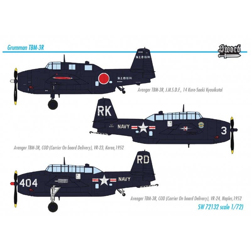 This is a highly detailed 1/72 scale plastic model kit of the TBM-3R/Avenger Shipboard aircraft as shown in the photos. This kit includes parts molded in gray and clear, an instruction manual, and a decal sheet (3 types: U.S. Navy x 2, aircraft belonging to the Kure educational unit of the Maritime Self-Defense Force x 1).