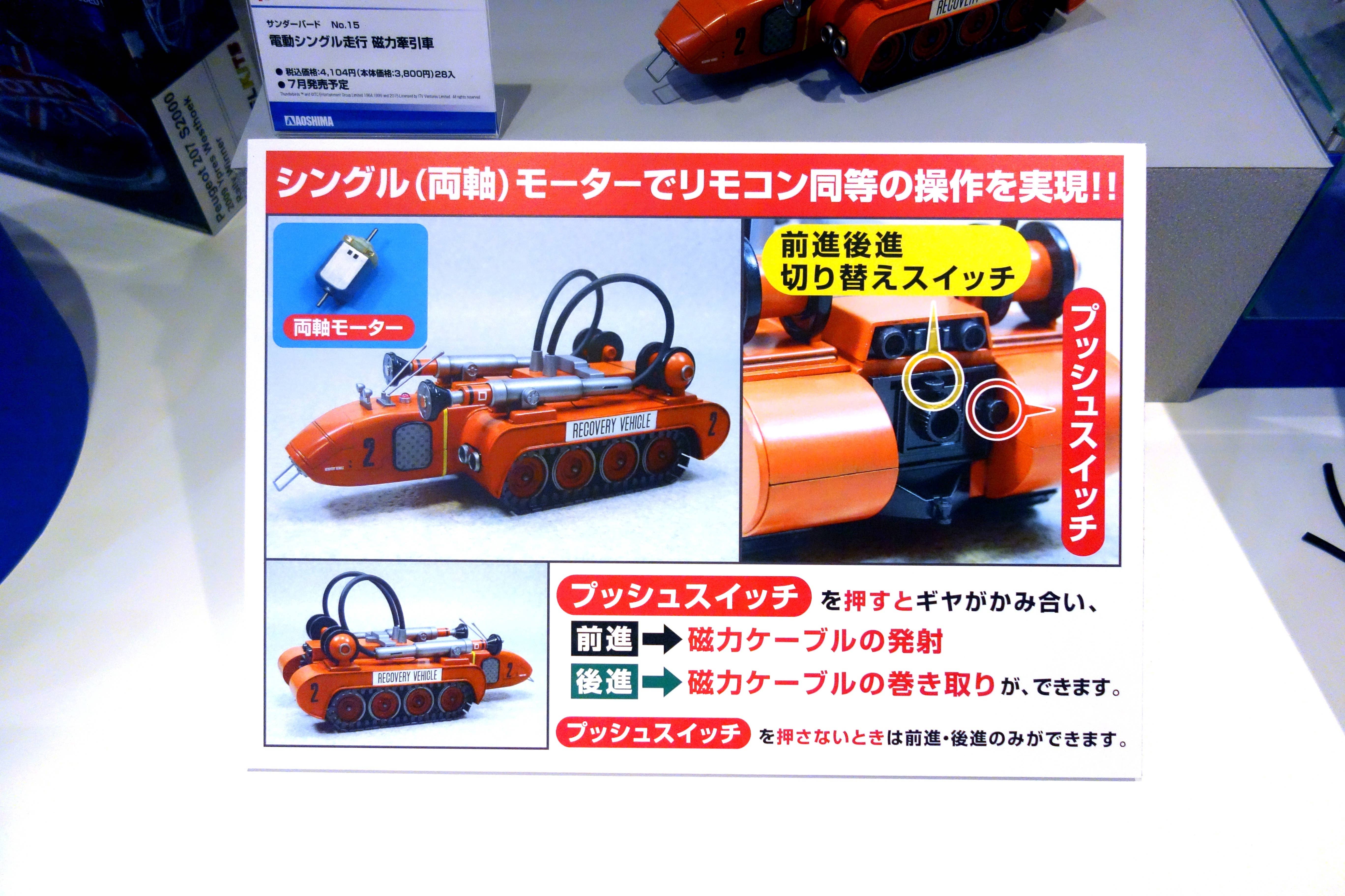 From Gerry Anderson's iconic "Thunderbirds" TV series, here's an amazing kit of the Recovery Vehicle, complete with a motor for action! Pictorial instructions in Japanese and partial English will guide you through the assembly process. Molded in searingly bright orange and gray, and decals are included.