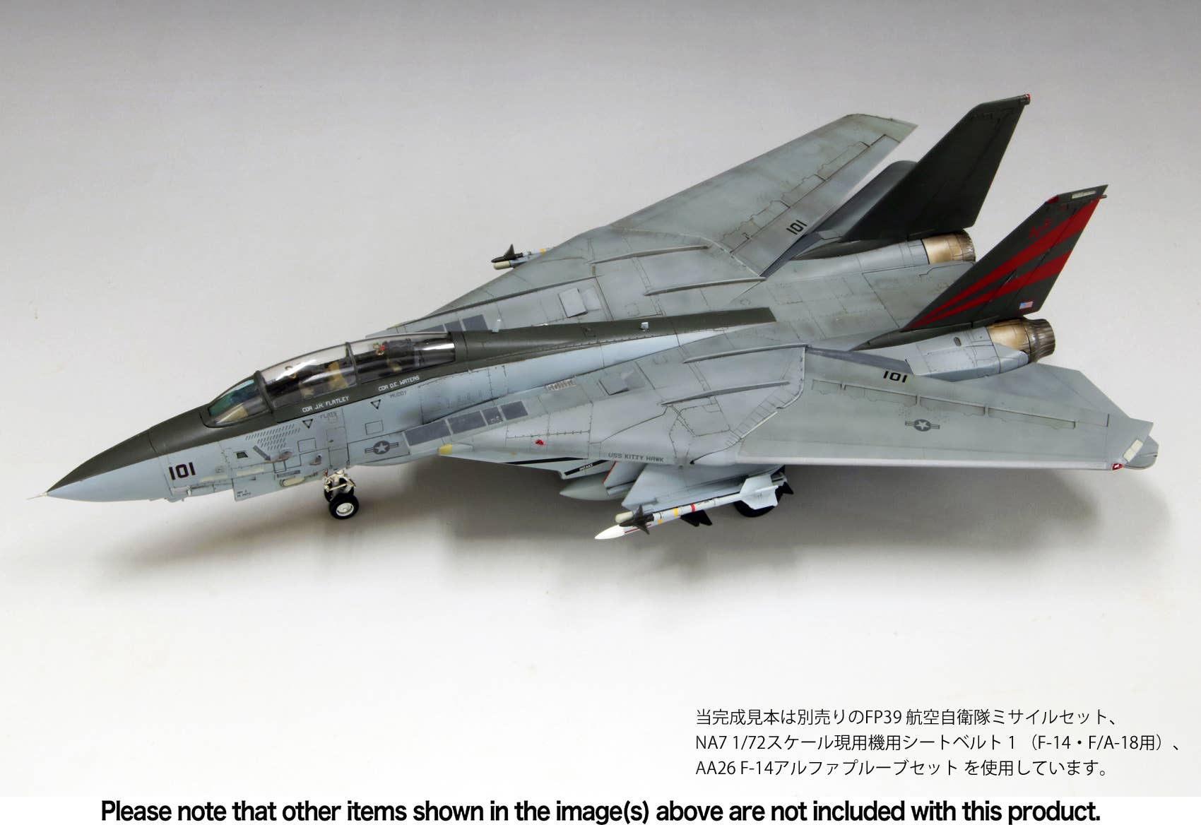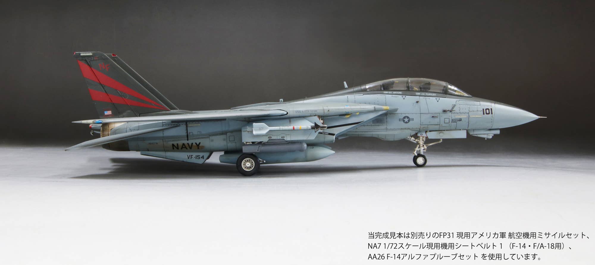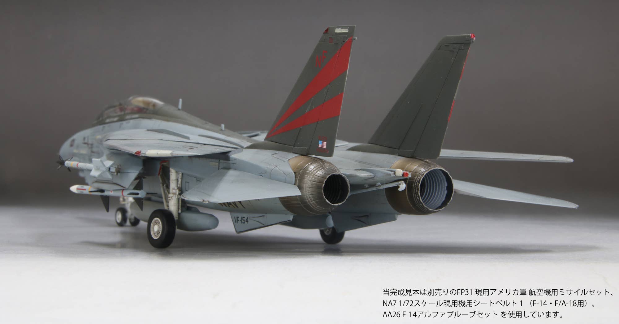 This model kit from Fine Molds recreates the markings worn by aircraft of the VF-154 (a.k.a. the Black Knights) squadron shortly after its return to Japan from Afghanistan in 2003. While the aircraft returned to the U.S. shortly after the replacement with the F/A-18F, its appearance remains memorable to many fans as "the last F-14 seen in Japan." The under-fuselage bomb rack is a new addition. Order yours today!