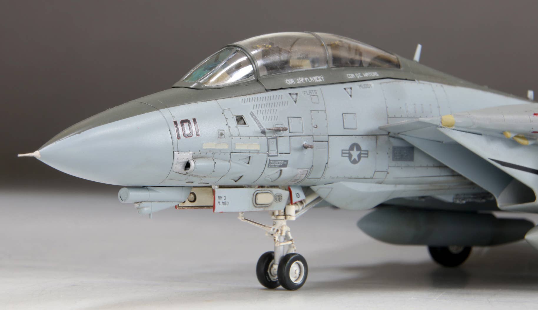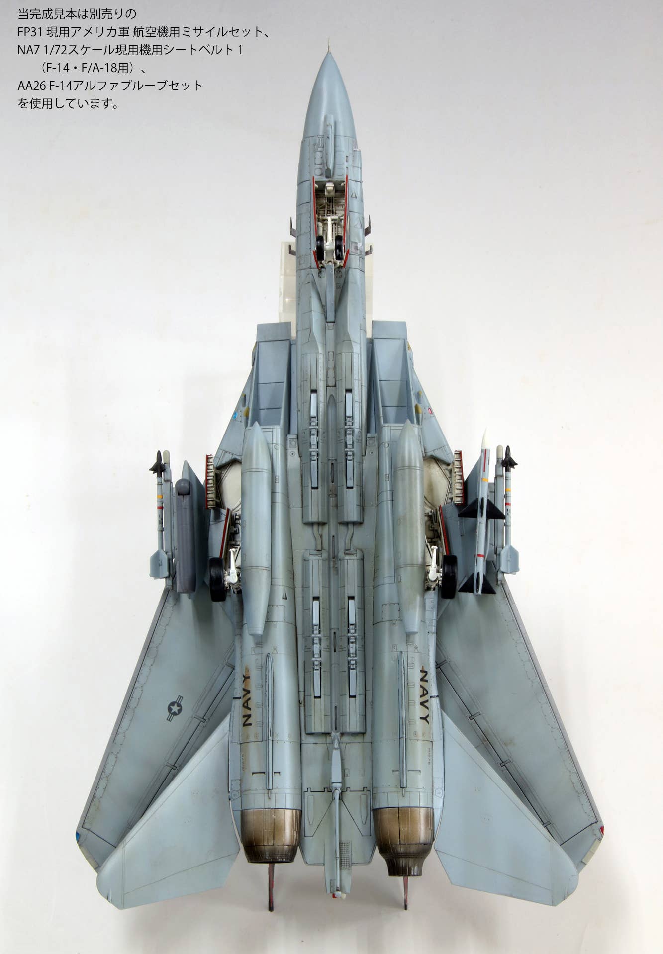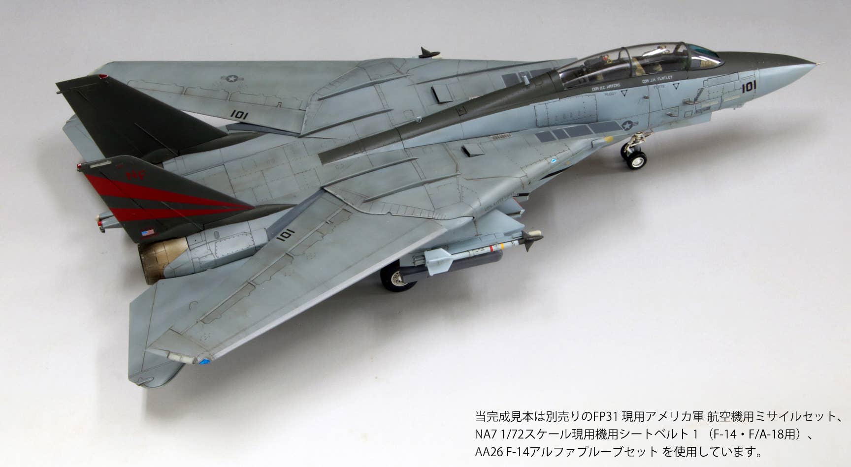 This model kit from Fine Molds recreates the markings worn by aircraft of the VF-154 (a.k.a. the Black Knights) squadron shortly after its return to Japan from Afghanistan in 2003. While the aircraft returned to the U.S. shortly after the replacement with the F/A-18F, its appearance remains memorable to many fans as "the last F-14 seen in Japan." The under-fuselage bomb rack is a new addition. Order yours today!