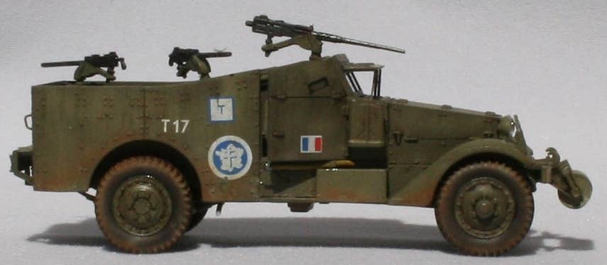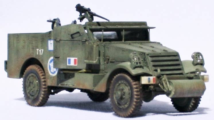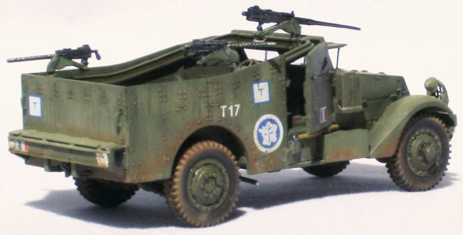 Here's a model of the M3 armored scout car used by the Allied Forces during WWII. White Motors began development of this vehicle in 1937, and between 1940 and 1944, 20,918 units were produced. During the war the vehicles were used by the USSR and England for tasks such as supplying Free France, and after the war many of the cars were sold to countries in Asia and Latin America. Many countries kept the vehicles in military service until the 1990s.