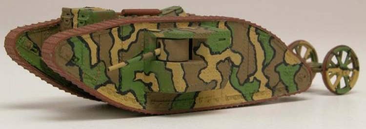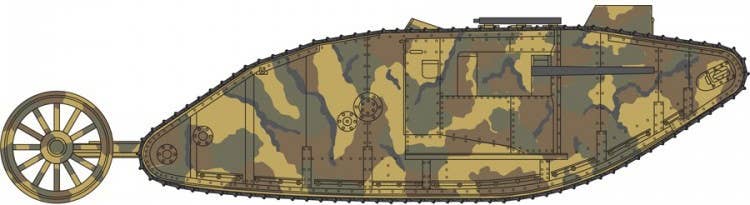 On September 15, 1916, at Flers-Courcelette, a new weapon appeared on the battlefield of the Western Front: the tank. The "male" version carried two 6-pounder naval guns and 4 Hotchkiss machine guns.