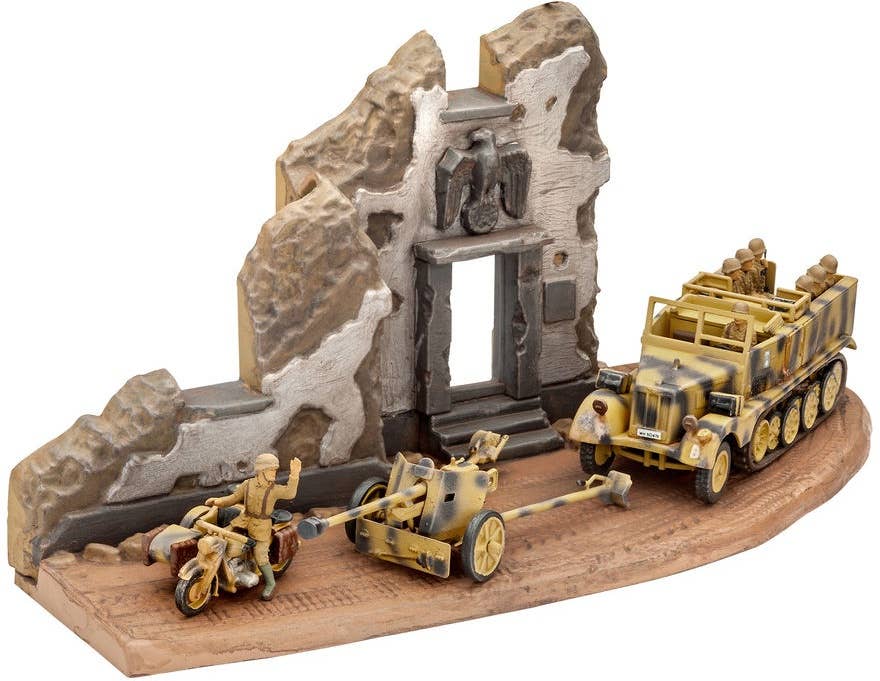 This set also includes an Sd.Kfz.11-one of the primary artillery tractors the Wehrmacht used to transport crews, ammunition, and towed guns across much of the world. In Italy, North Africa, Russia, France, and Germany, the Sd.Kfz.11 tirelessly hauled the machinery of war across the blasted landscape.