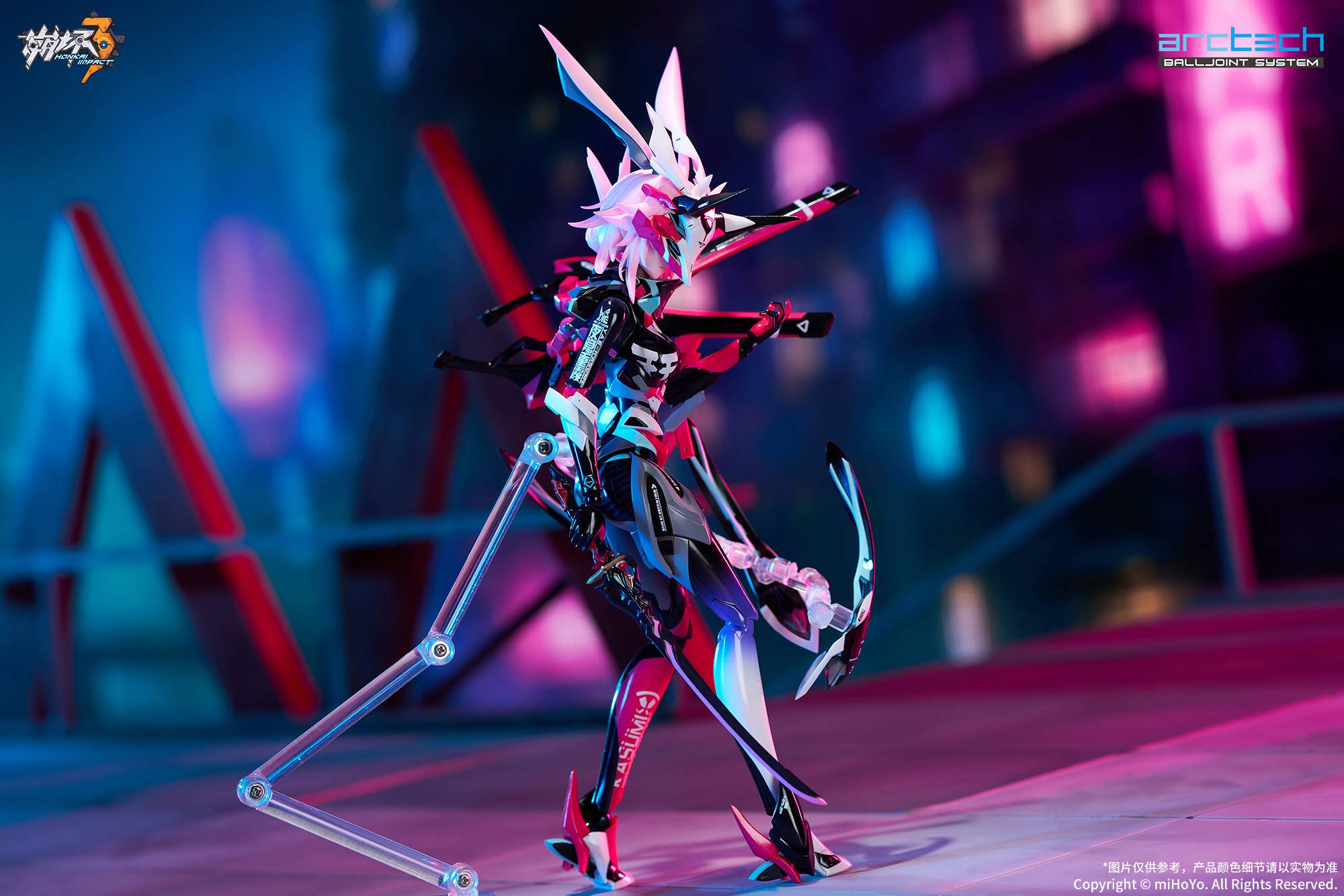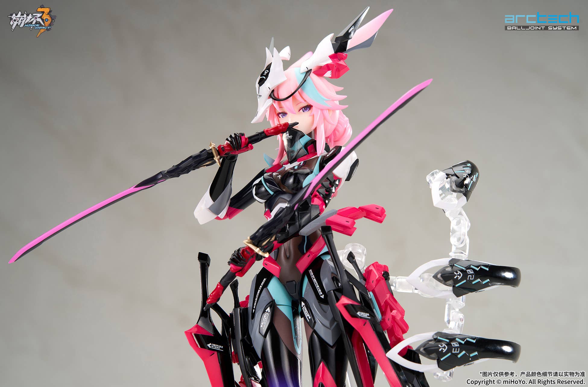 Yae Sakura, from the popular mobile and tablet action game "Honkai Impact 3rd," joins the "Arctech" action-figure lineup from Apex in her exclusive battle suit, Neon Shadow! This 1/8-scale figure has 39 points of articulation, maintaining her lovely proportions while ensuring a wide range of motion. Her weapon, Divine Punishment: Judgment, is included, allowing you to recreate lots of characteristic poses from the game! A wide variety of interchangeable faces and accessories is included as well, and as a special bonus, a salted fish will be included with the first production run of this figure! (This item is only included with the first run of this figure; if yours does not include it, it was not part of the first run. The bonus item may also not be included, even with early orders, due to shipping order restrictions.) An acrylic keychain is also included. Order her for your own collection today!