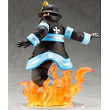 This figure is based off of the grinning Shinra from the cover of the first volume of the manga. From the shiny Special Fire Force Company 8 emblem on Shinra's helmet, to the smoke and flames that were made with clear plastic parts that can be seen emanating from his feet, this figure is full of detail from every angle. And best of all, parts of the uniform will illuminate when lit by a blacklight, similar to its appearance in the show!