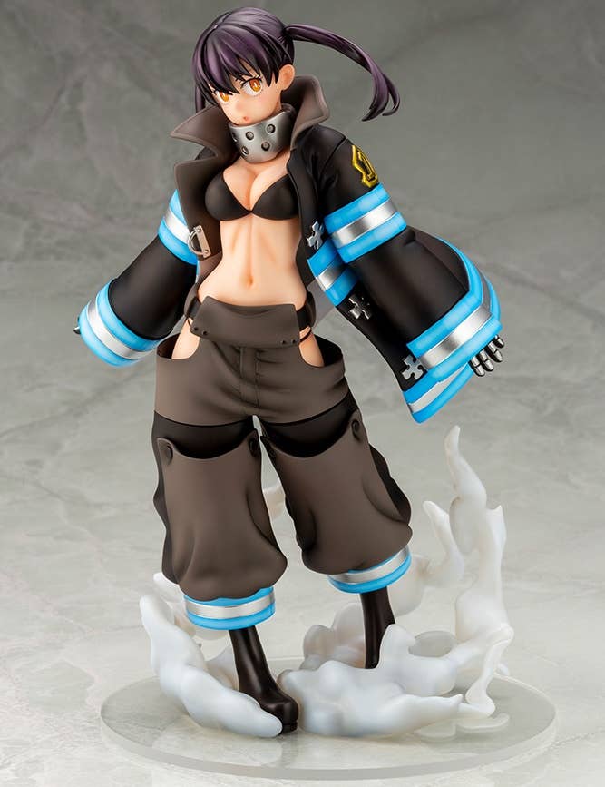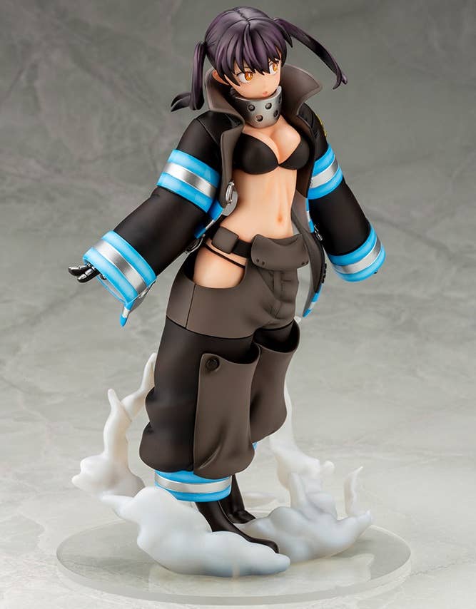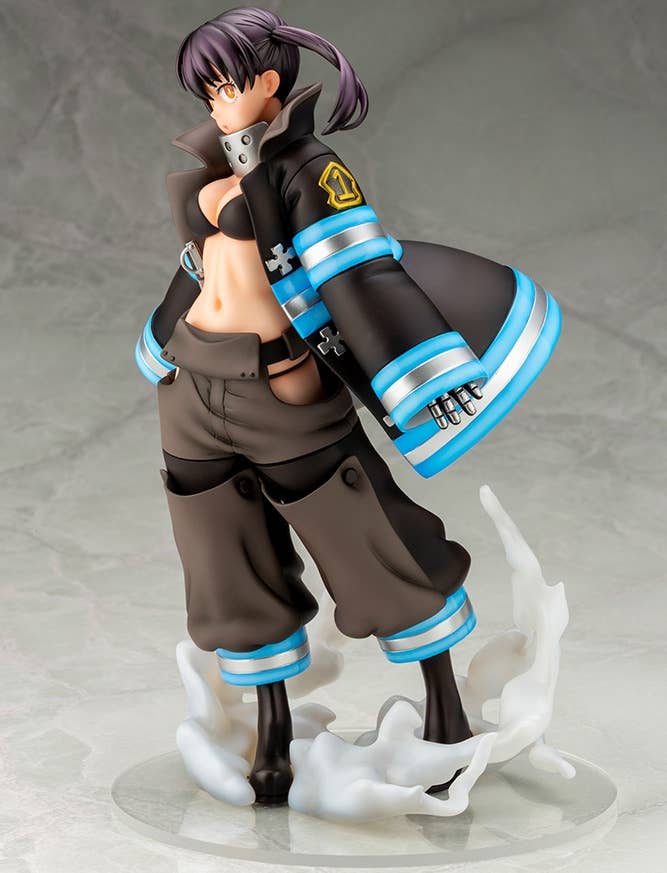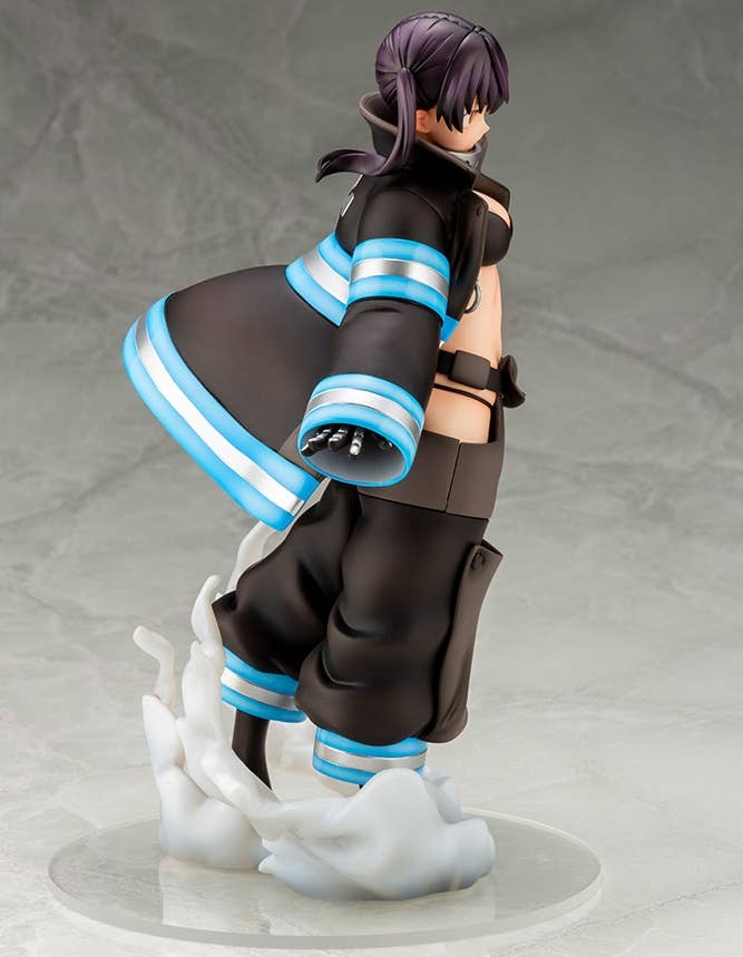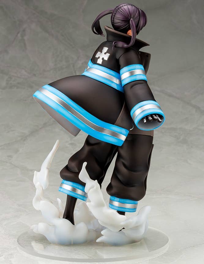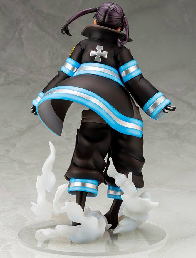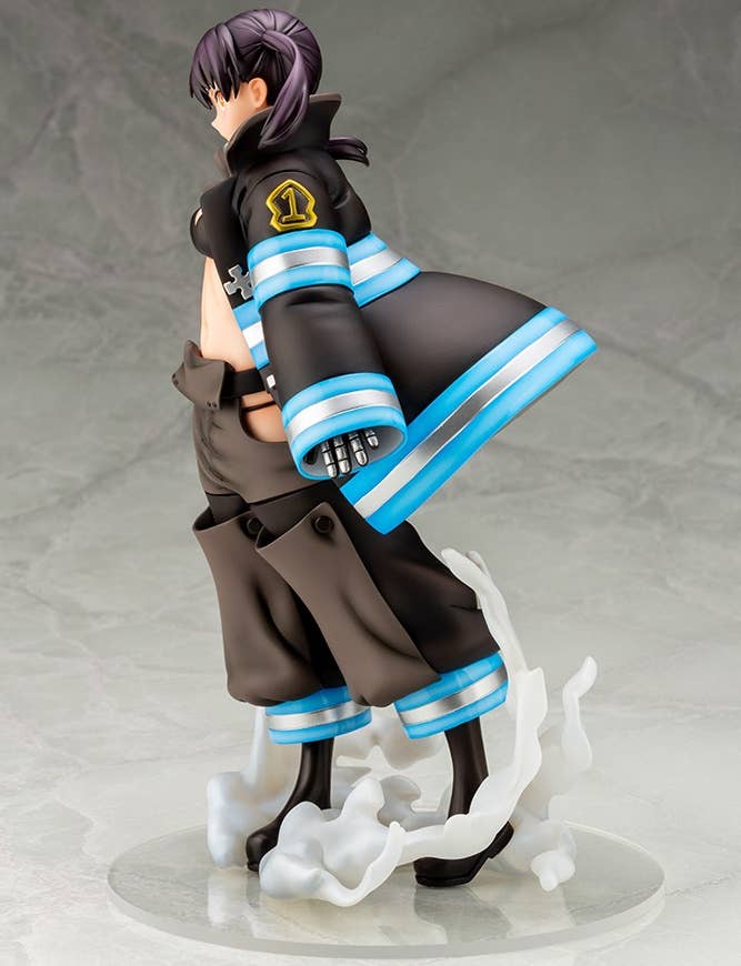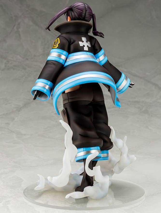 This statue is based off Tamaki from the cover of the seventh volume of the manga, which shows off Tamaki's serious yet cute personality. From the blue stripes on the firefighter jacket that gleam brightly in the world of smoke and flames, to the curves of Tamaki's body, this figure shows off many aspects of her charm.