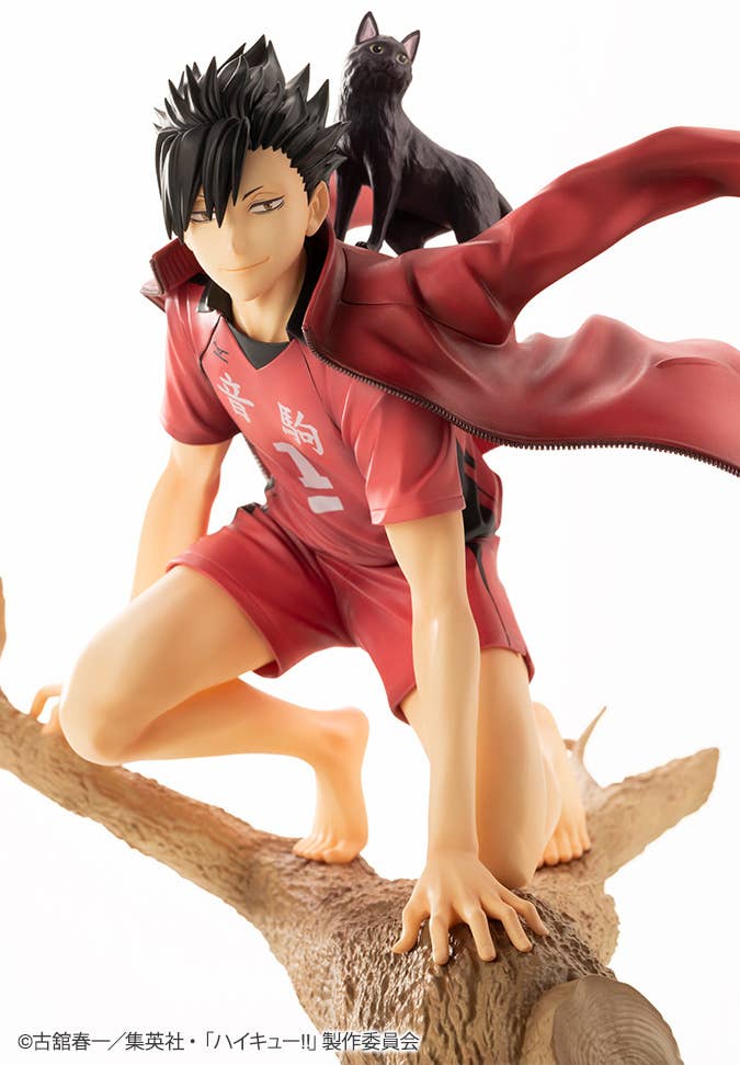 Tetsuro Kuroo from "Haikyu!!" gets a new figure from Kotobukiya, based on a visual drawn by Takahiro Chiba! He's perched on a tree with a confident smile, while the wind blows his jersey behind him; a black cat is poised on his back. You'll love the detailed sculpting of the tree bark, and the muscular tension expressed in Tetsuro's dynamic pose. Order it for your own collection today!