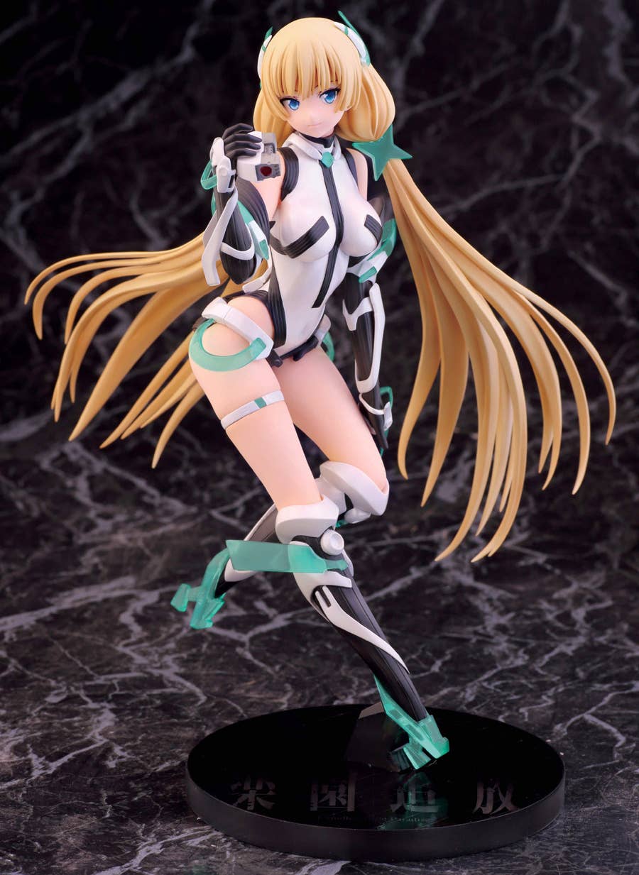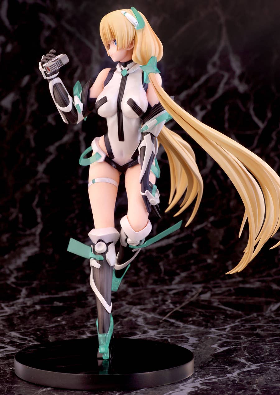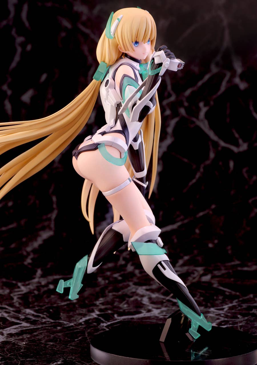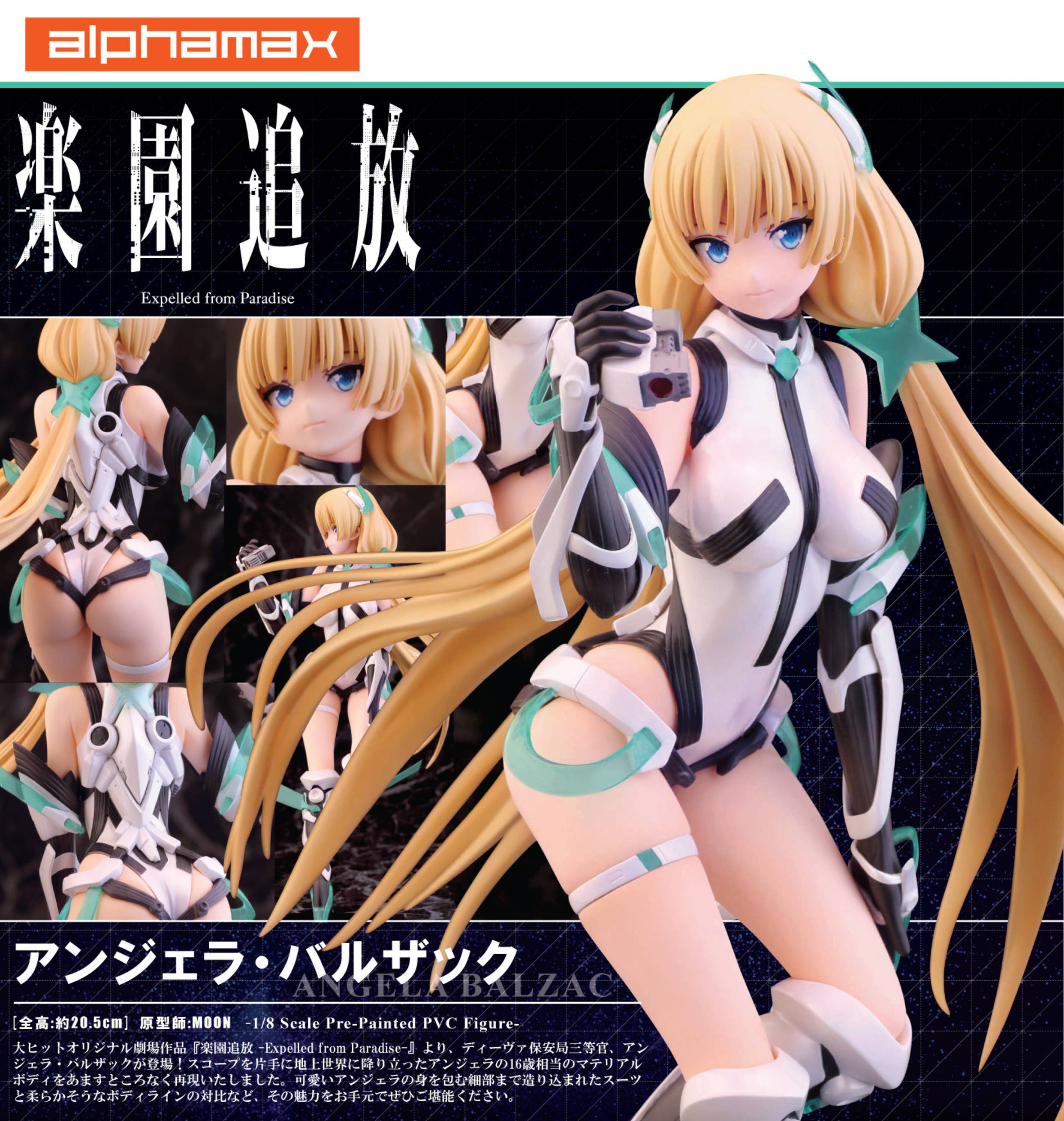 Alpha Max's outstanding figure of Angela Balzac from "Expelled from Paradise" is back! She pauses for a moment to consider the world around her, with the wind in her hair and her feet just barely touching down to the surface world. The use of pearlescent paint and clear plastic parts add to the otherworldly feel of this figure, and her posture on her base gives an impression of weightlessness. Look forward to the future, and order her for your own collection today!