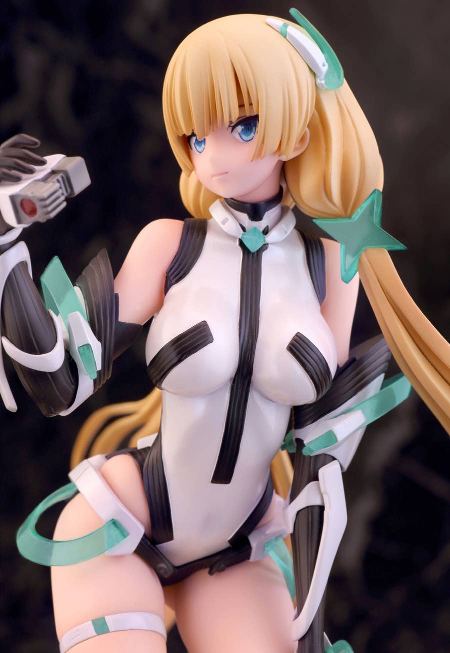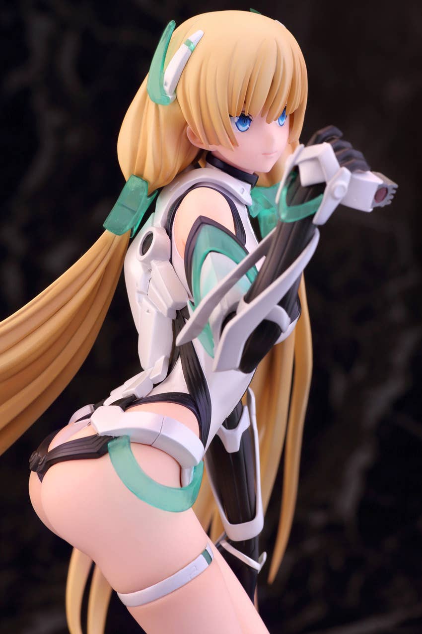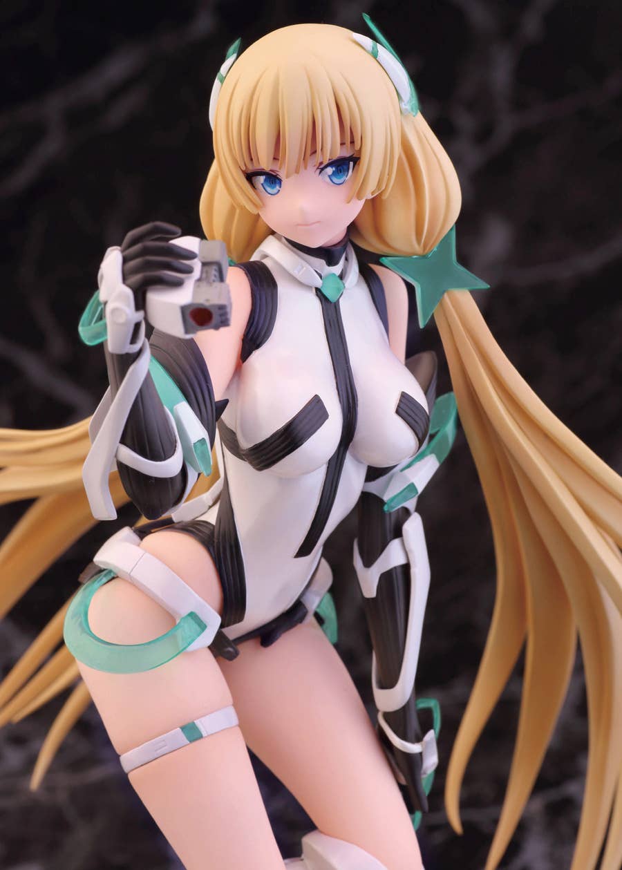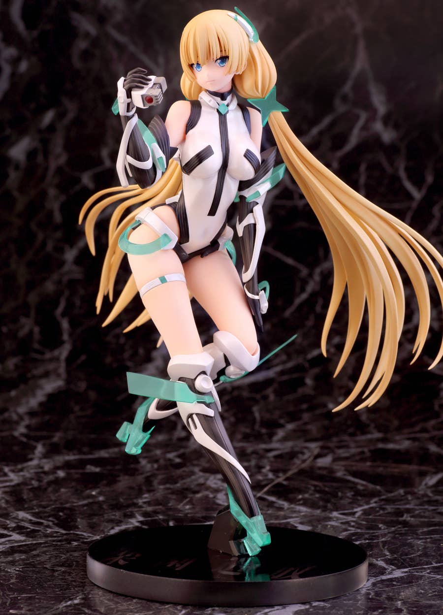 Alpha Max's outstanding figure of Angela Balzac from "Expelled from Paradise" is back! She pauses for a moment to consider the world around her, with the wind in her hair and her feet just barely touching down to the surface world. The use of pearlescent paint and clear plastic parts add to the otherworldly feel of this figure, and her posture on her base gives an impression of weightlessness. Look forward to the future, and order her for your own collection today!