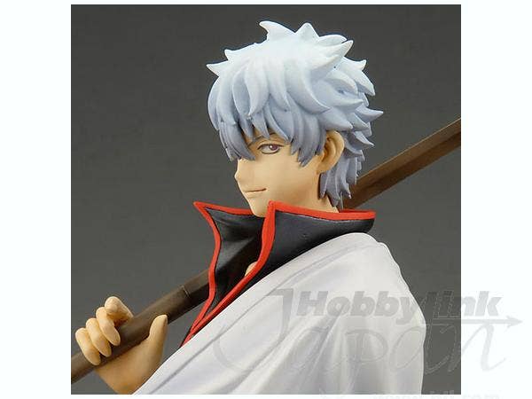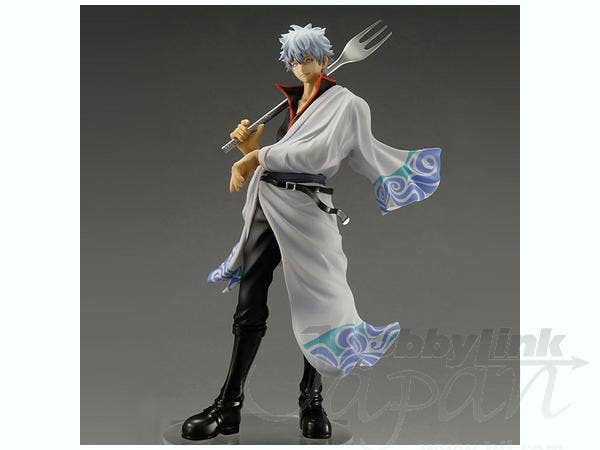 The lazy but good-hearted Gintoki Sakata, the star (?) of "Gintama," now joins Mega House's G.E.M. lineup! Standing about 21.5cm tall, Gin poses nobly with either his wooden sword or a gigantic fork propped over his shoulder and a smirk on his face. A base is included. Well-done figures of male characters are hard to come by--don't miss out, and order him now!
