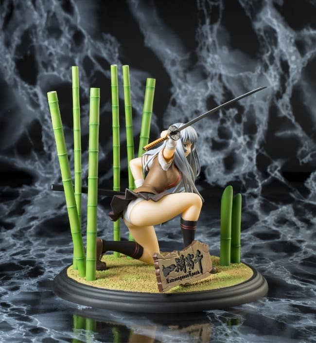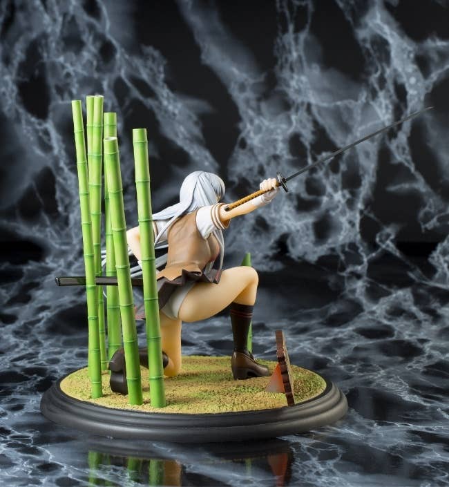 With her eyes uncharacterstically open, Choun Shiryu from "Ikki Tousen Extravaganza Epoch" shows a bamboo grove who's the boss! Some assembly of the base with the bamboo trunks is required. She's about 14cm tall in her kneeling pose.