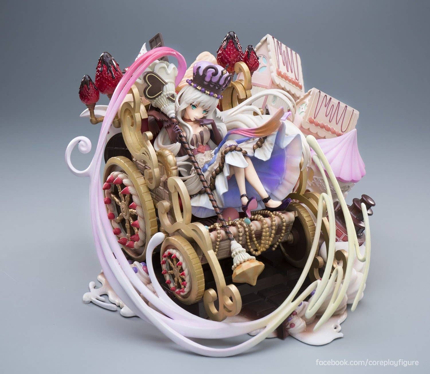 From the mobile strategy game "Merc Storia" comes the queen of chocolate, Franchir! Based on her official art from the game, Franchir comes riding her eleborate carriage, surrounded by scenery all made of sweets! Including the base, this figure measures about 24cm tall. Order today!