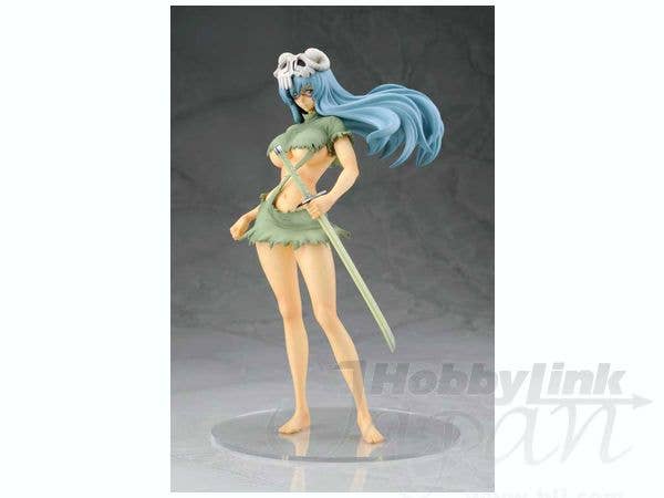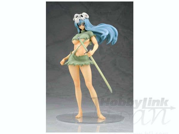 The redoubtable Arrancar Nelliel from "Bleach" is ready for battle with her sword close at hand. She gives you a withering glare from under her bangs, while the rest of her hair flows behind her in the breeze. The statuesque warrior is about 23cm tall; a base is included. Add her to your collection today!Please note that the photos shown are of a prototype; the production version may vary. Also, figures such as this are mass produced and as a result some inconsistencies in finish and painting may occur; these are not considered manufacturer's defects. If you absolutely must have perfection, prepare to do some touch-up work on your own.