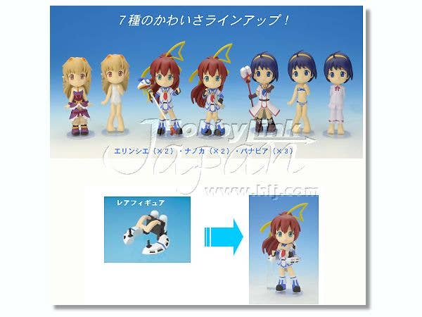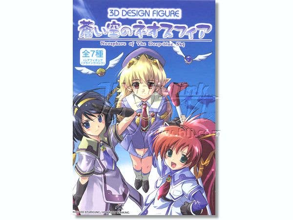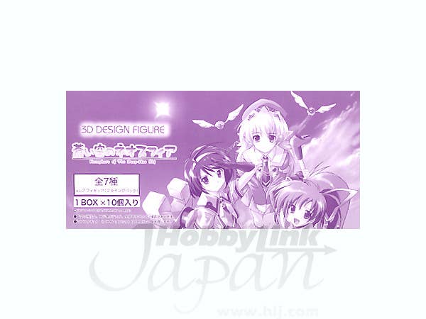 Here's a 3D Design Figure trading figure series featuring characters from the "Neosphere of the Deep-blue Sky" anime series. The lineup includes Nanoka Franka (costume A), Elyncy Yaasrop (princess outfit), Elyncy Yaasrop (swimsuit), Nanoka Franka (costume B), Panabia Tornado (costume ver.), Panabia Tornado (swimsuit), Panabia Tornado (pajamas), plus one secret flying pack for use on Nanoka Franka (costume A), which comes to a total of eight possible items to trade and collect. Sold by the randomly-packed assortment of 10 pieces. Also check out the premium box offering, linked below! Please note that these are trading figures and are individually sealed and randomly packed in boxes of 10 before shipment to HobbyLink Japan. As a result we are unable to honor requests for individual or specific figures, nor can we promise you which one(s) you will receive in a box. Please order only if you are willing to accept any of the possible types.