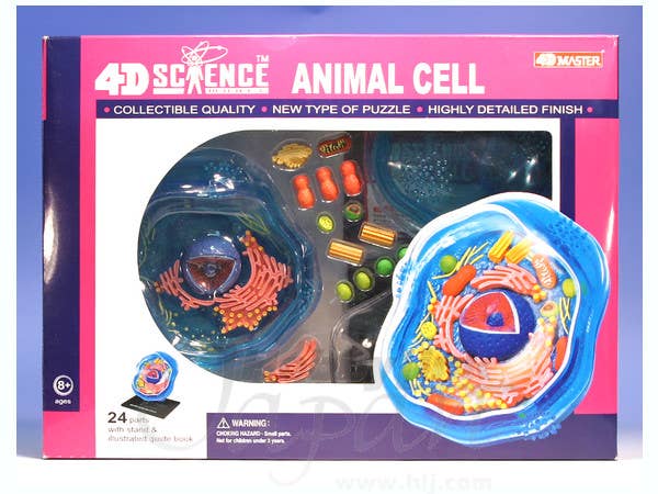 Mitochondria! Rough Endoplasmic Reticulum! Centrioles! Nucleolus! Not to mention Ribosomes! All the mysteries of the animal cell, unveiled! This super-detailed model of one of the building blocks of life features cutaway sections of the various cell parts to give you an in-depth look at processes within. Touted as a "new type of puzzle," the model features 24 highly detailed prepainted parts that can be removed and reinstalled. Includes an illustrated guidebook (in Japanese) and a stand. Great for students of biology!