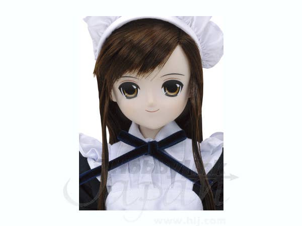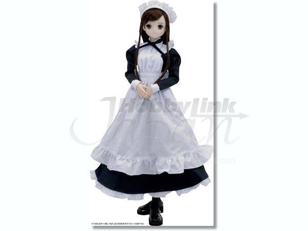 Azone's 60cm superstar, Lycee, wears the winter uniform from the famous Akihabara landmark, the Cure Maid Cafe! Graced with an Obitsu ball-jointed Whitey body, brunette Lycee comes wearing a demure long skirt, white blouse, ruffled apron and headdress to match, black stockings and strap shoes--and a velvety ribbon bow to wear at her throat! Her cheerful smile welcomes one and all. Act fast!